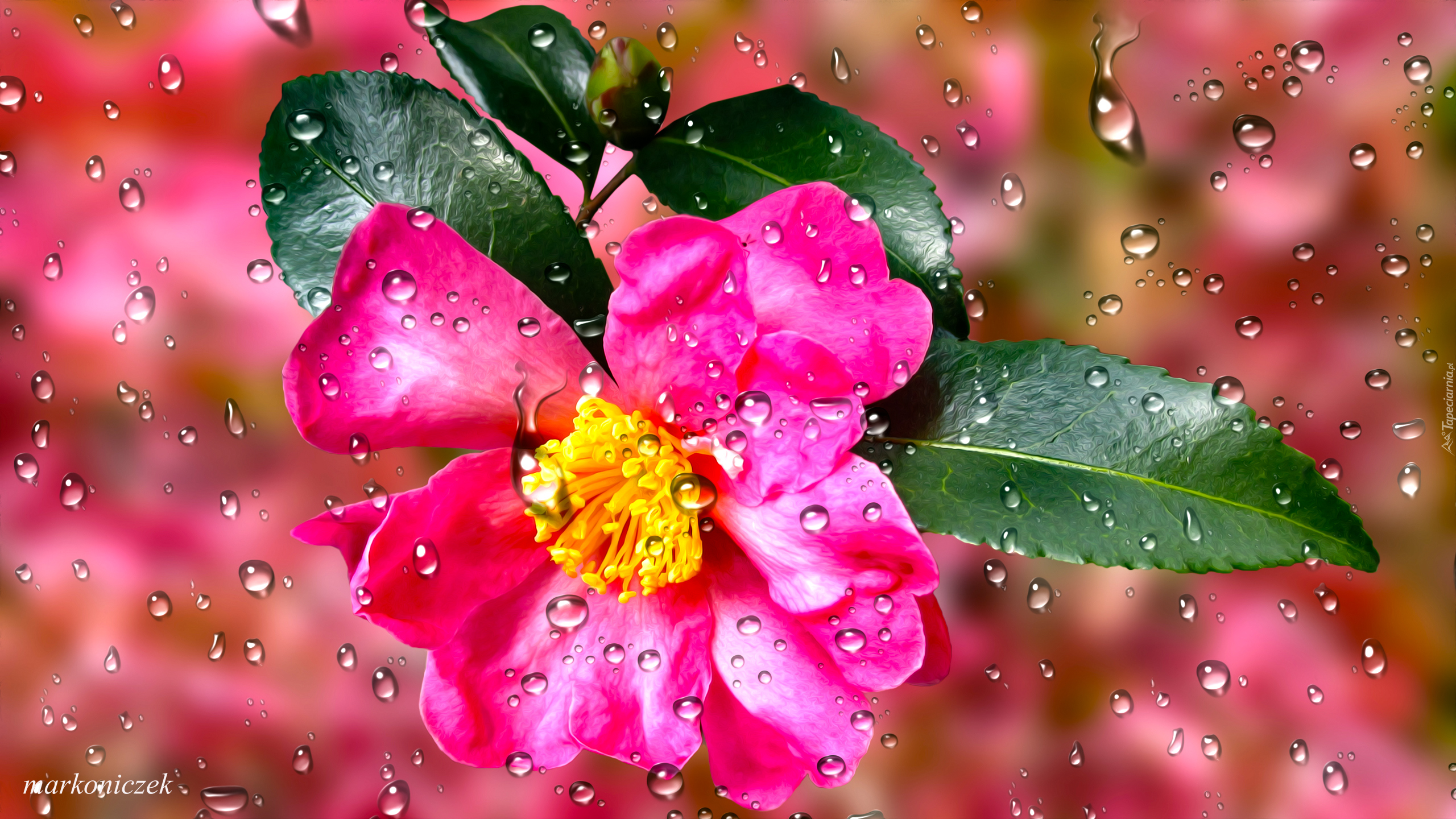Edytor tapety: Kamelia w kroplach wody