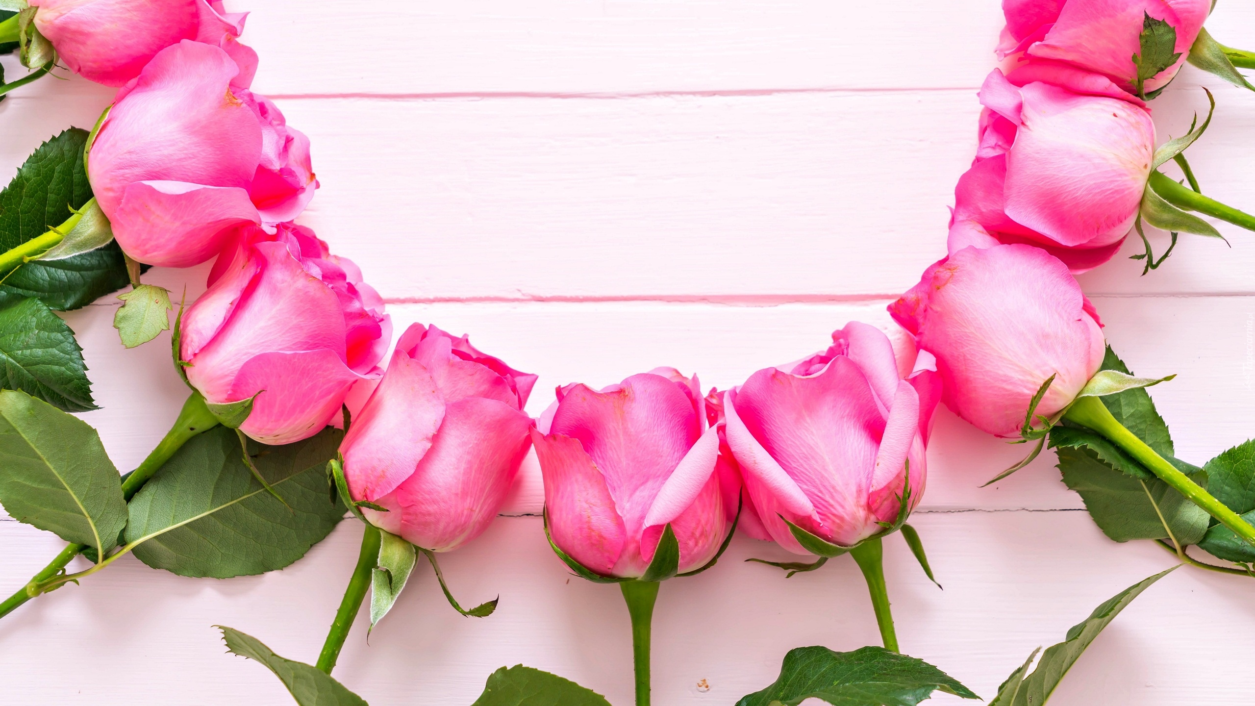 Edytor tapety: Róże ułożone w półokrąg na deskach