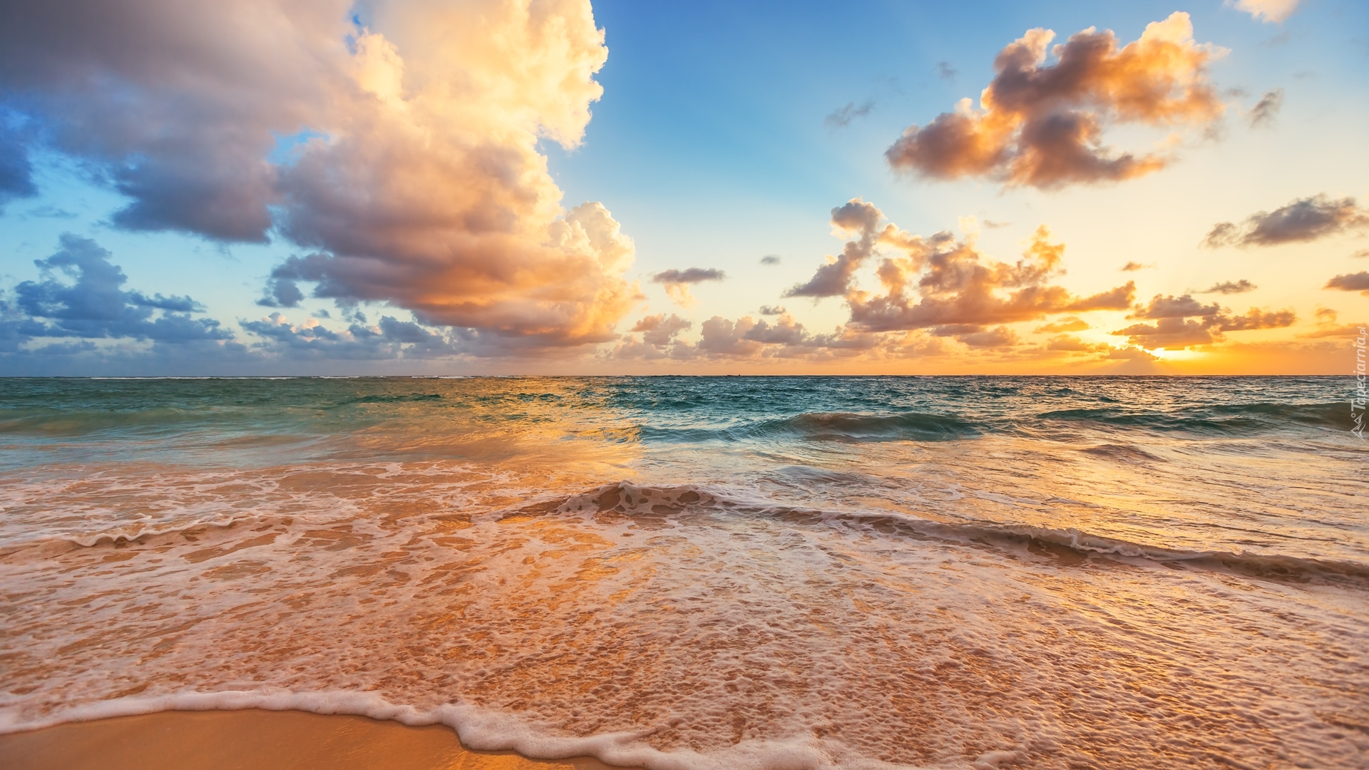 Edytor tapety: Chmury nad morzem o wschodzie słońca