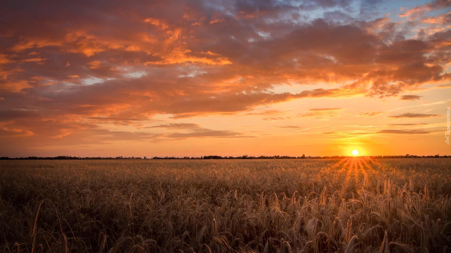 Edytor tapety: Zachód słońca nad polami ze zbożem