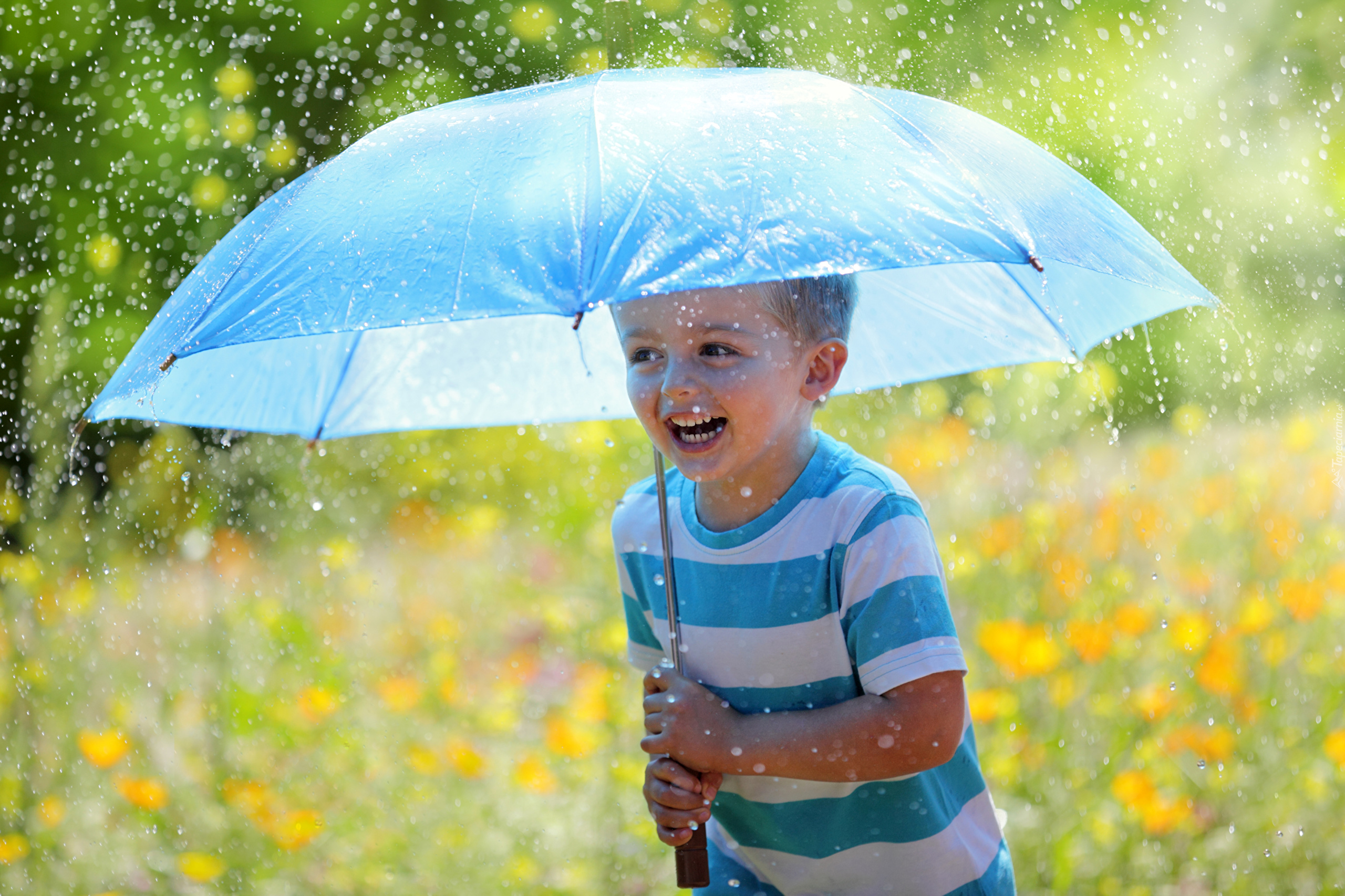 Edytor tapety: Chłopiec z parasolem w deszczu