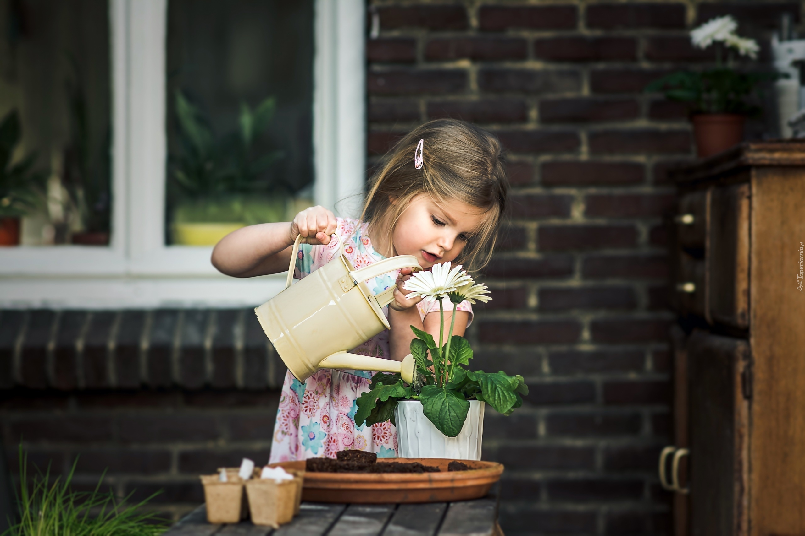Edytor tapety: Dziewczynka z konewką i kwiatami
