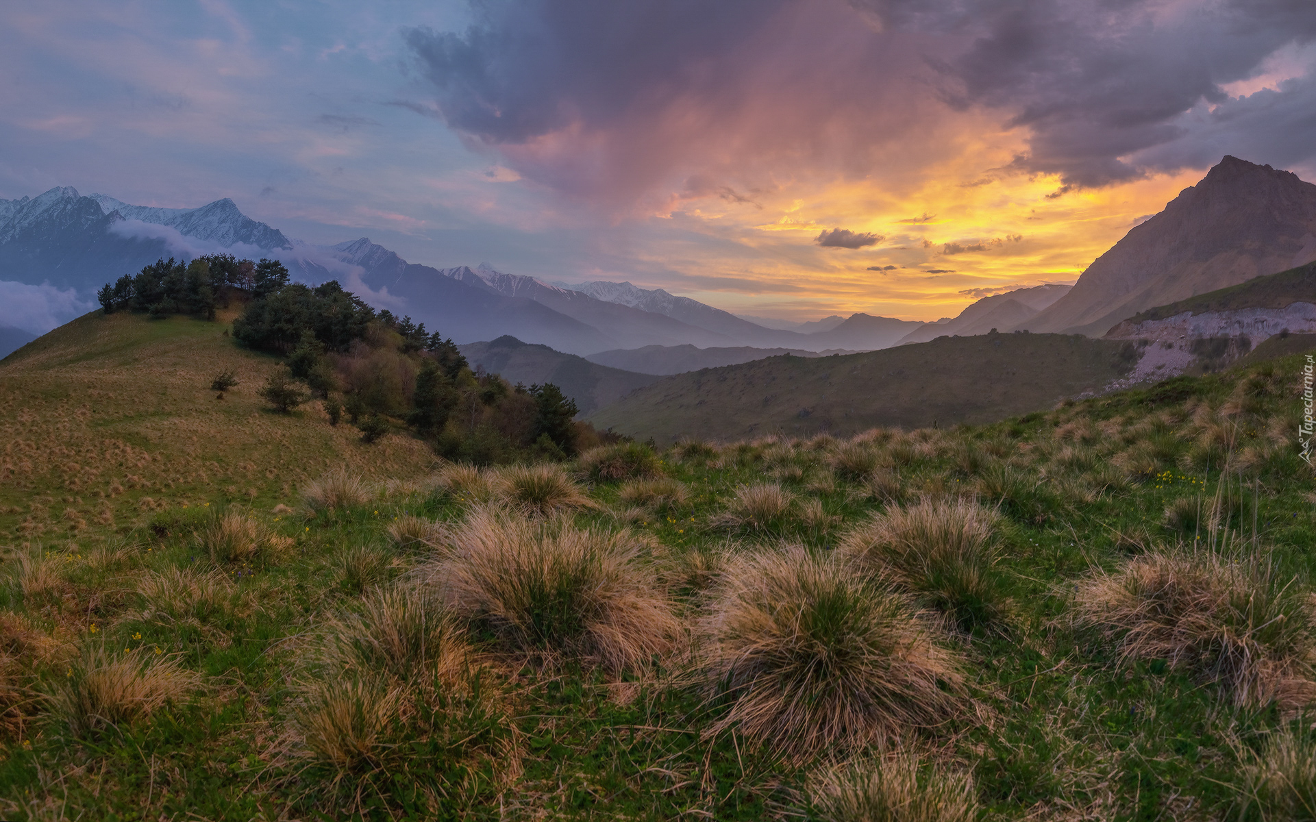 Edytor tapety: Kępki trawy z górami w tle