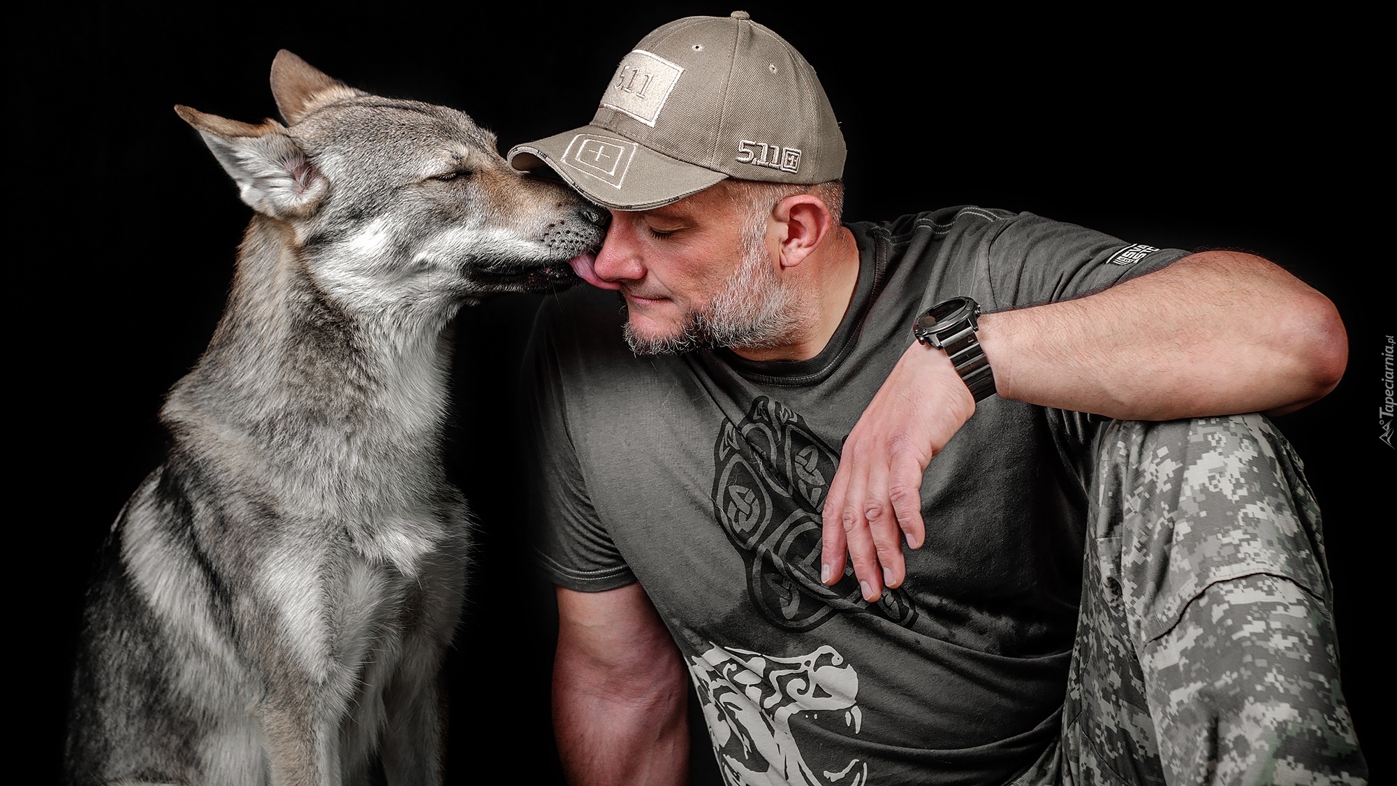 Edytor tapety: Wilczak czechosłowacki ze swoim panem