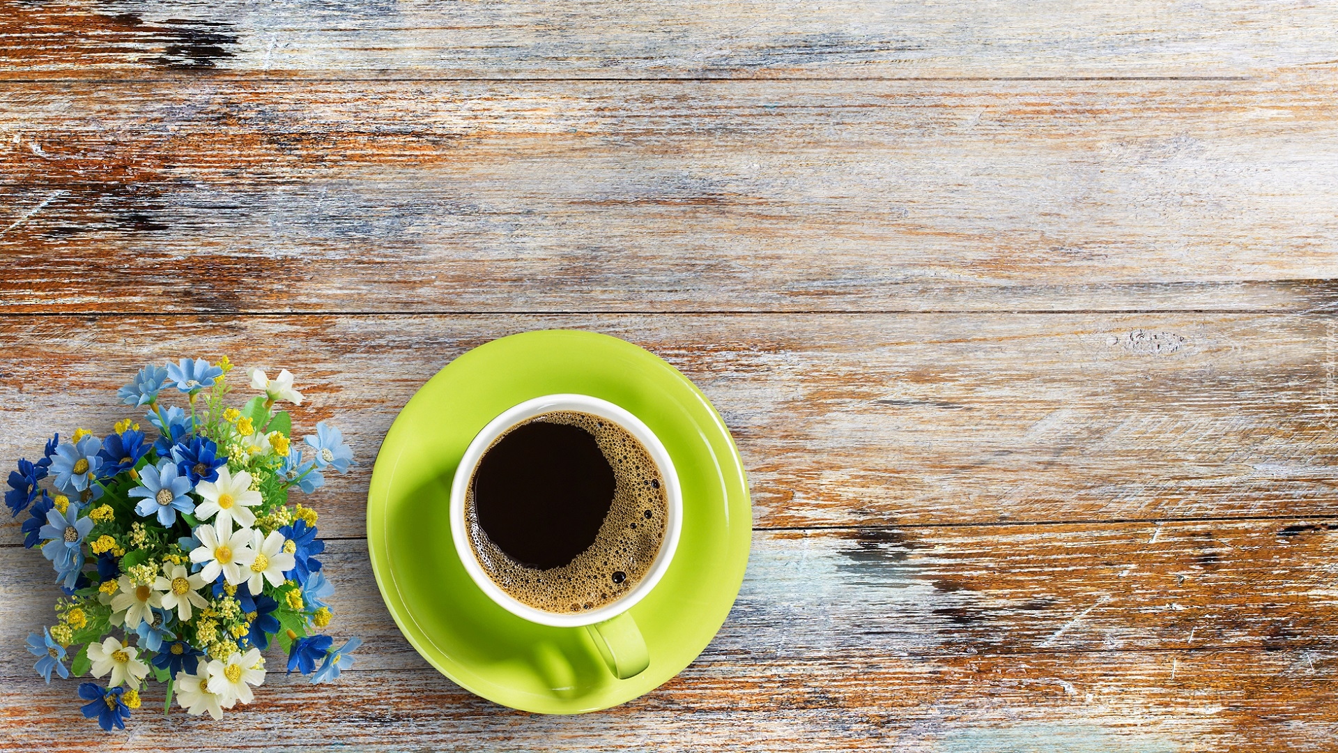 Edytor tapety: Kwiatki obok filiżanki kawy