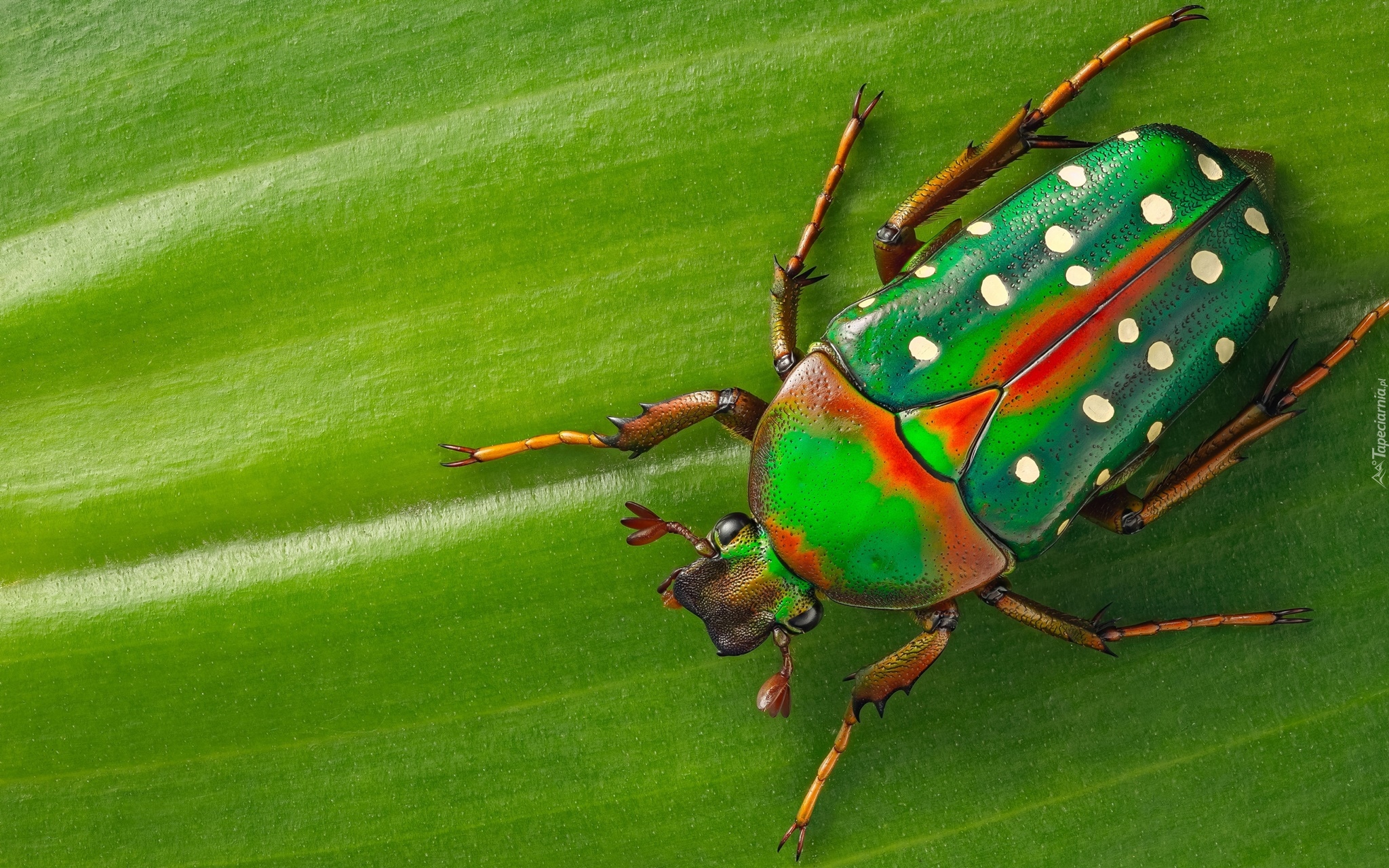 Edytor tapety: Nakrapiany chrząszcz na liściu