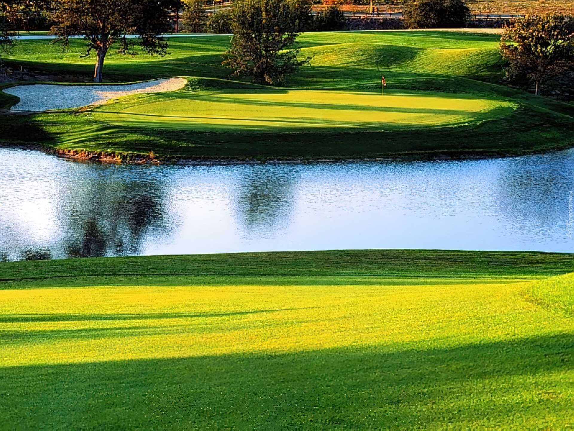 Edytor tapety: Pole Golfowe, stawy wodne