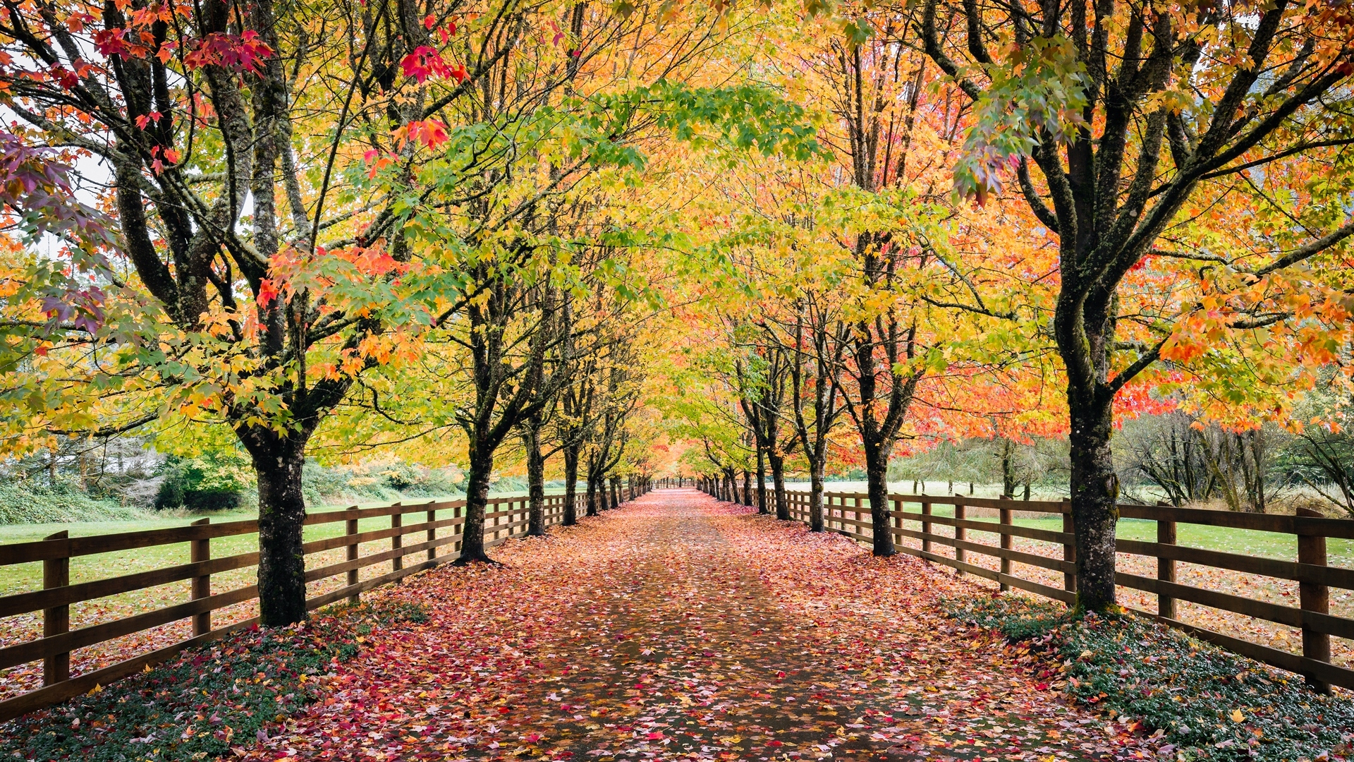 Edytor tapety: Droga z jesiennymi drzewami w parku