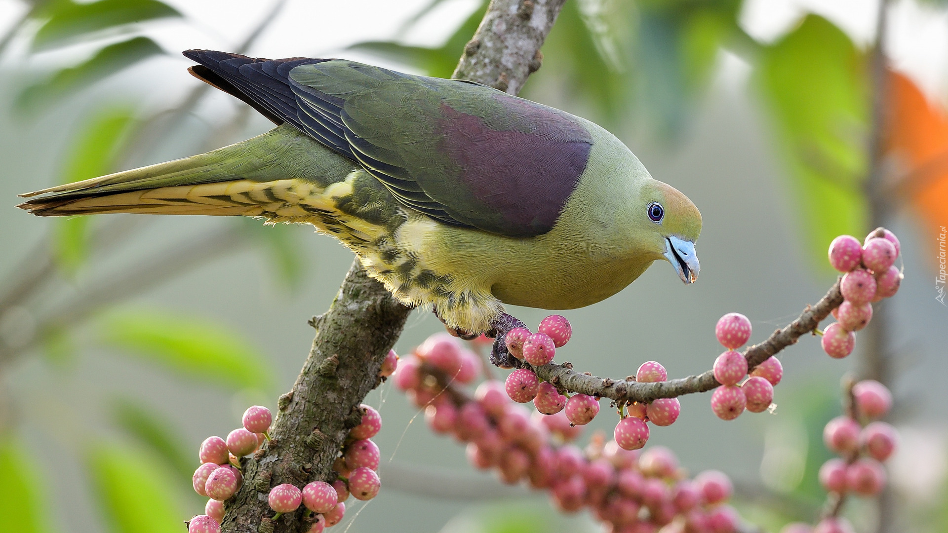 Edytor tapety: Gołąb o zielonych piórkach na gałązce