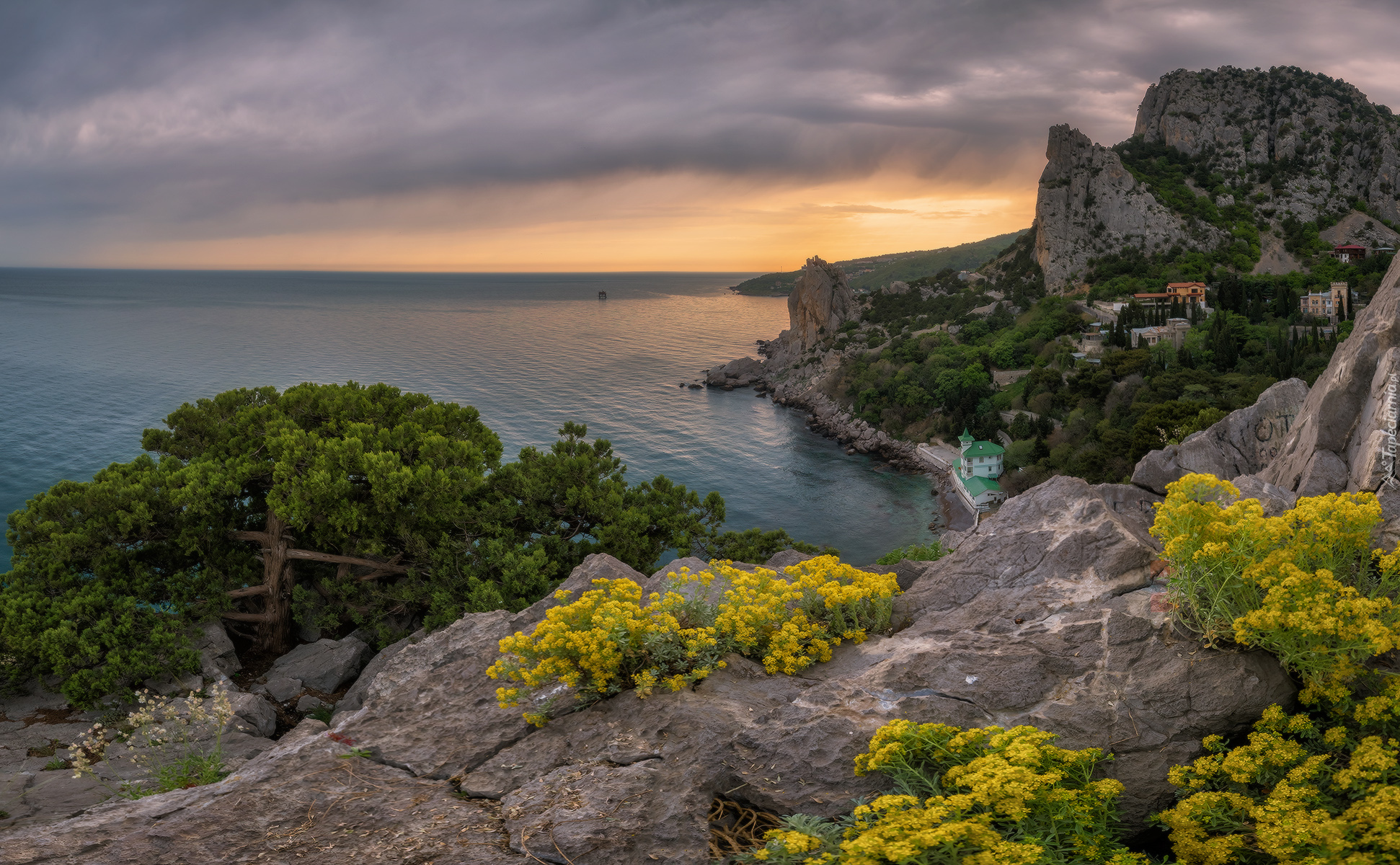 Edytor tapety: Domy pod górą Koshka w krymskiej miejscowości Simejiz