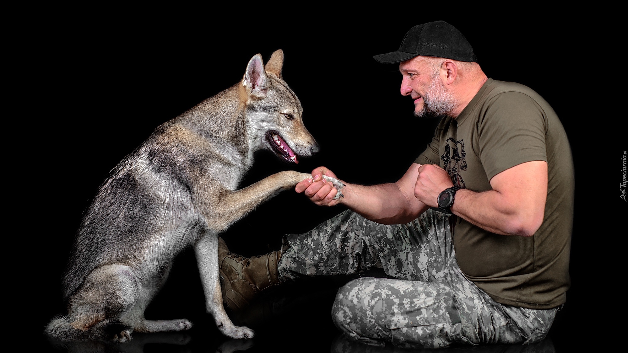 Edytor tapety: Wilczak czechosłowacki podający łapę swojemu panu