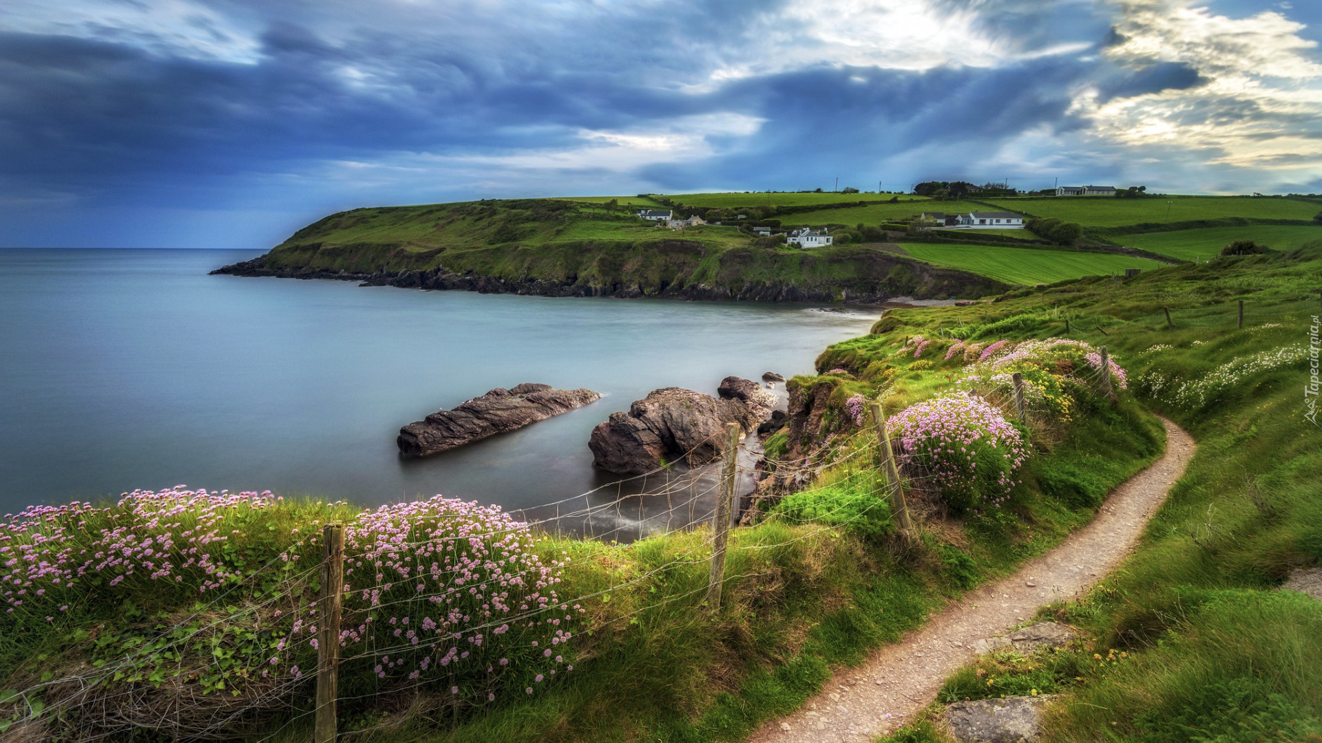 Edytor tapety: Ścieżka wzdłuż wybrzeża porośniętego kwiatami