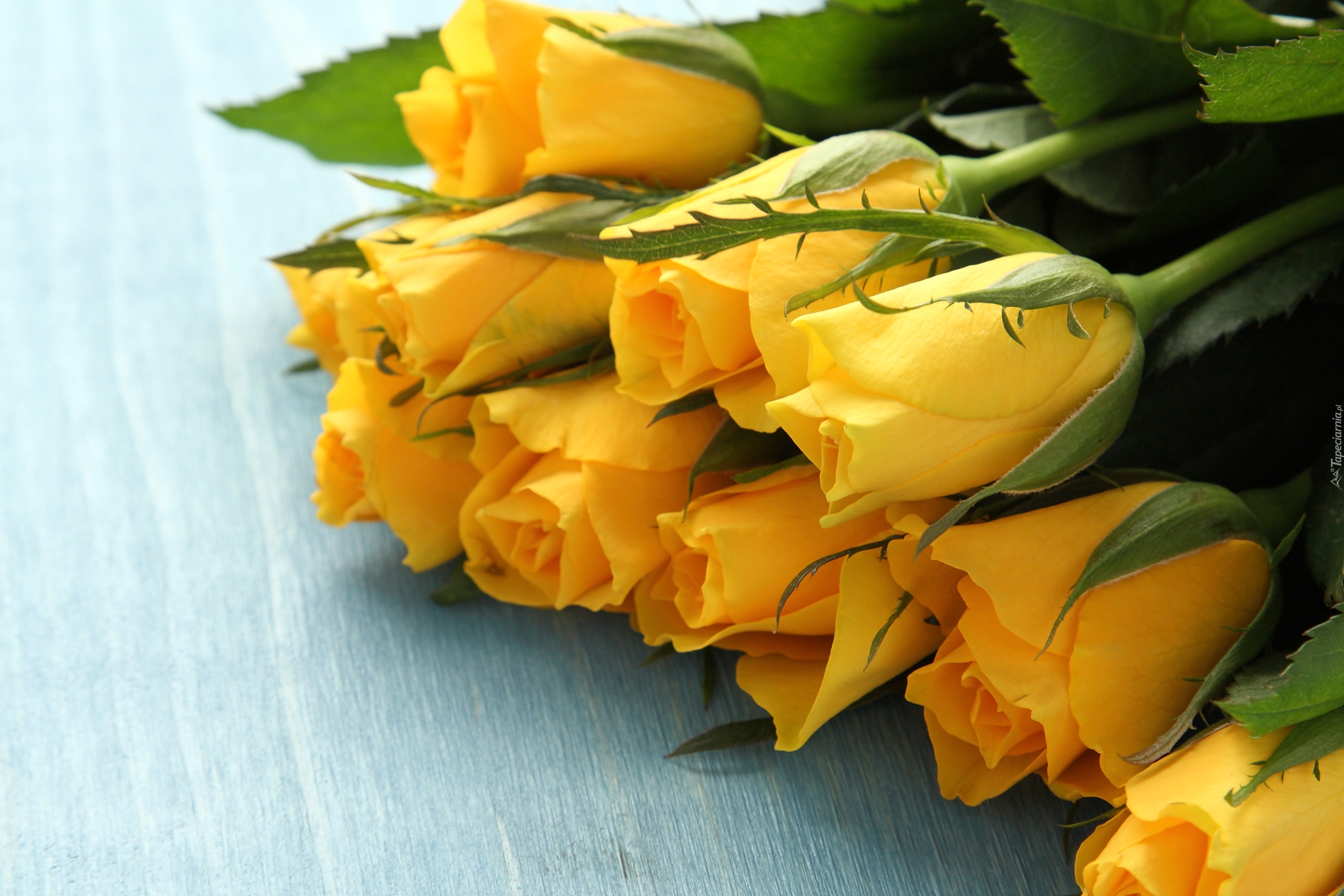 Edytor tapety: Żółte róże na deskach
