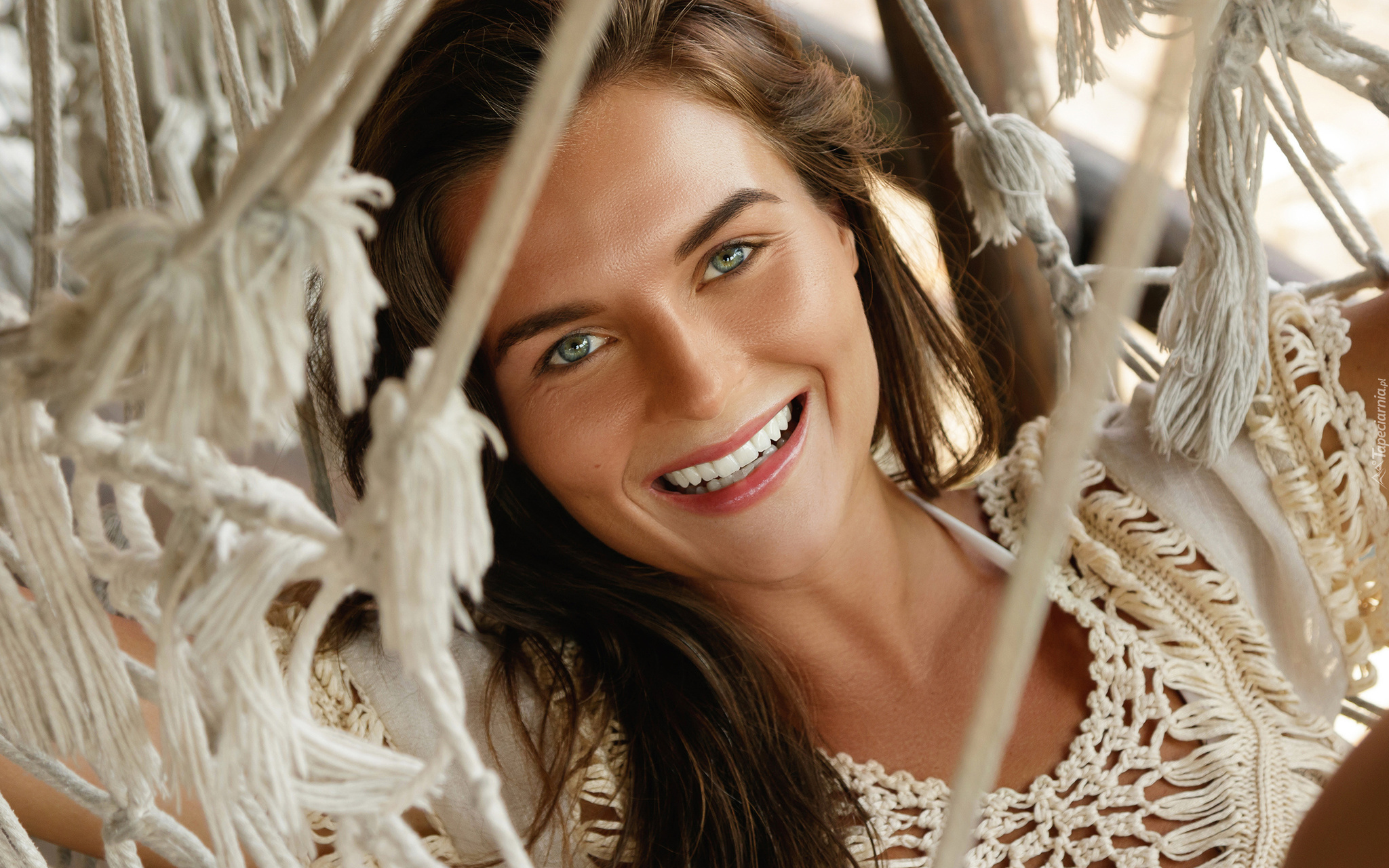 Edytor tapety: Uśmiechnięta długowłosa kobieta