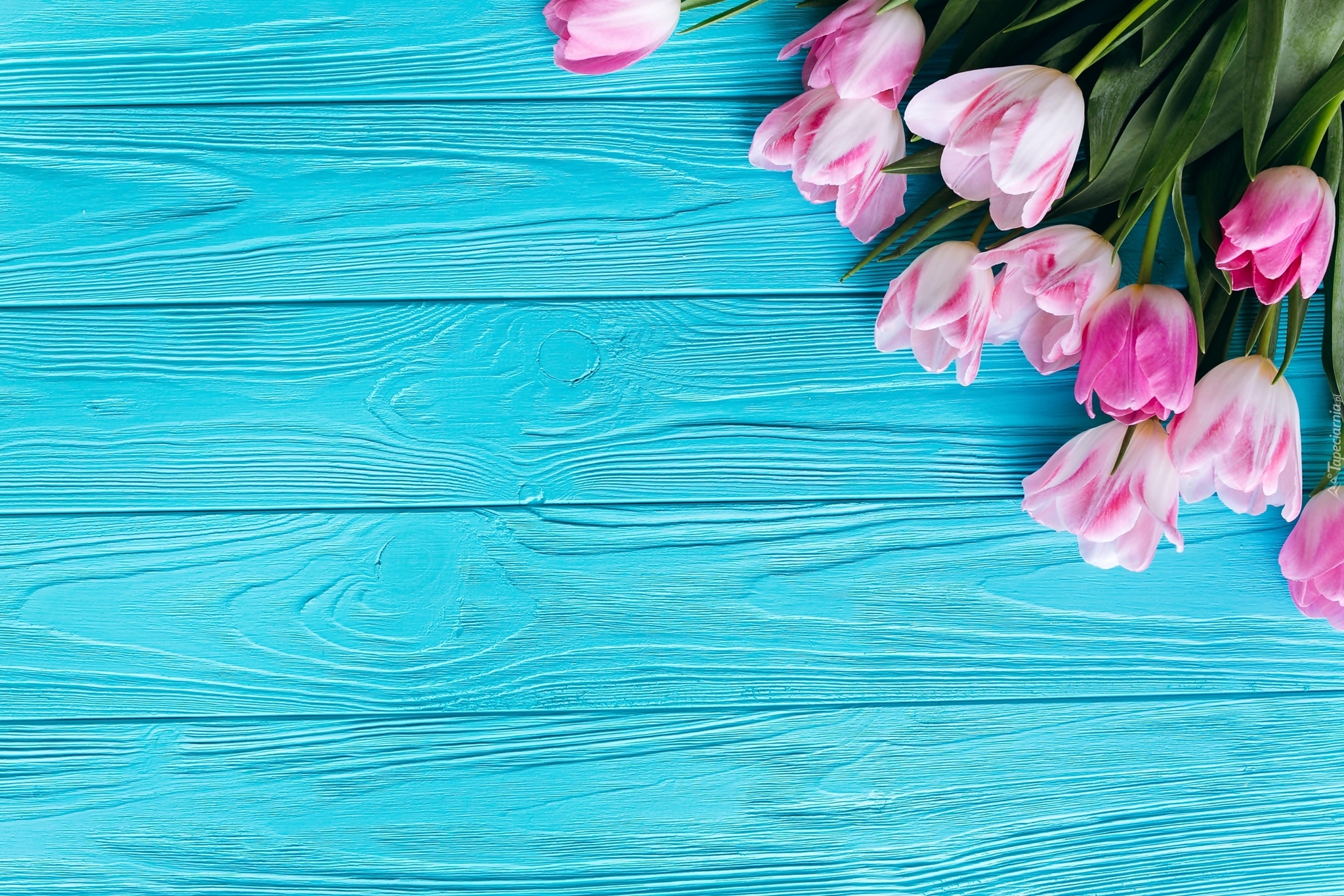 Edytor tapety: Biało-różowe tulipany na deskach
