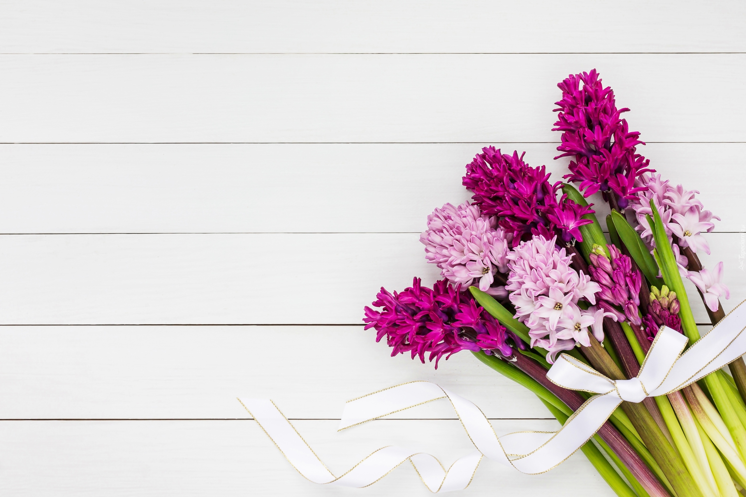 Edytor tapety: Bukiet hiacyntów przewiązany wstążką