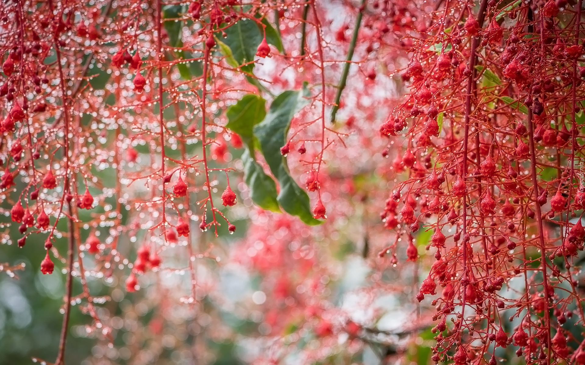 Edytor tapety: Brachychiton klonolistny w kroplach wody