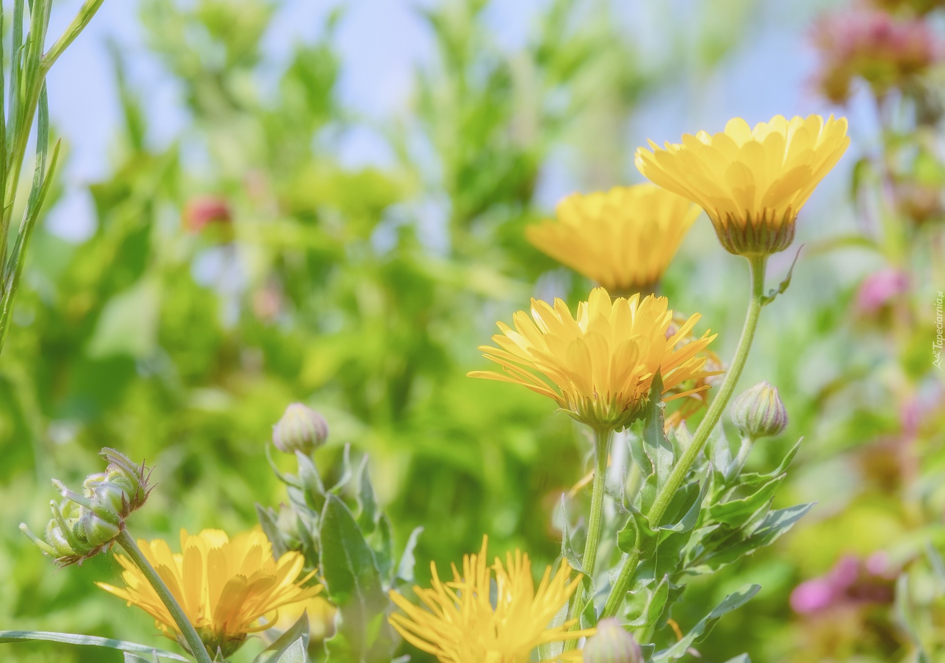 Edytor tapety: Żółte nagietki z pąkami