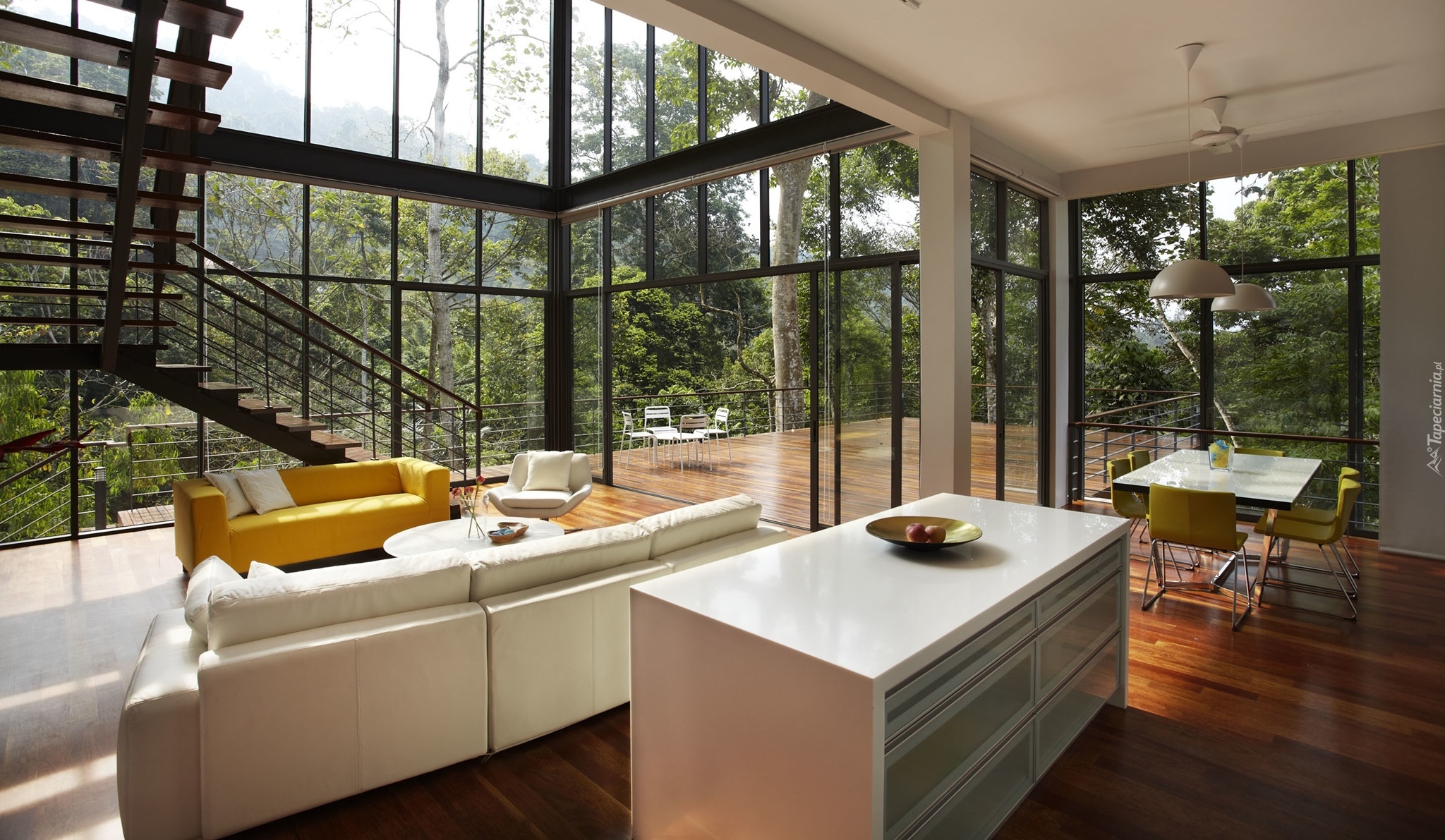 Edytor tapety: Salon z dużymi oknami