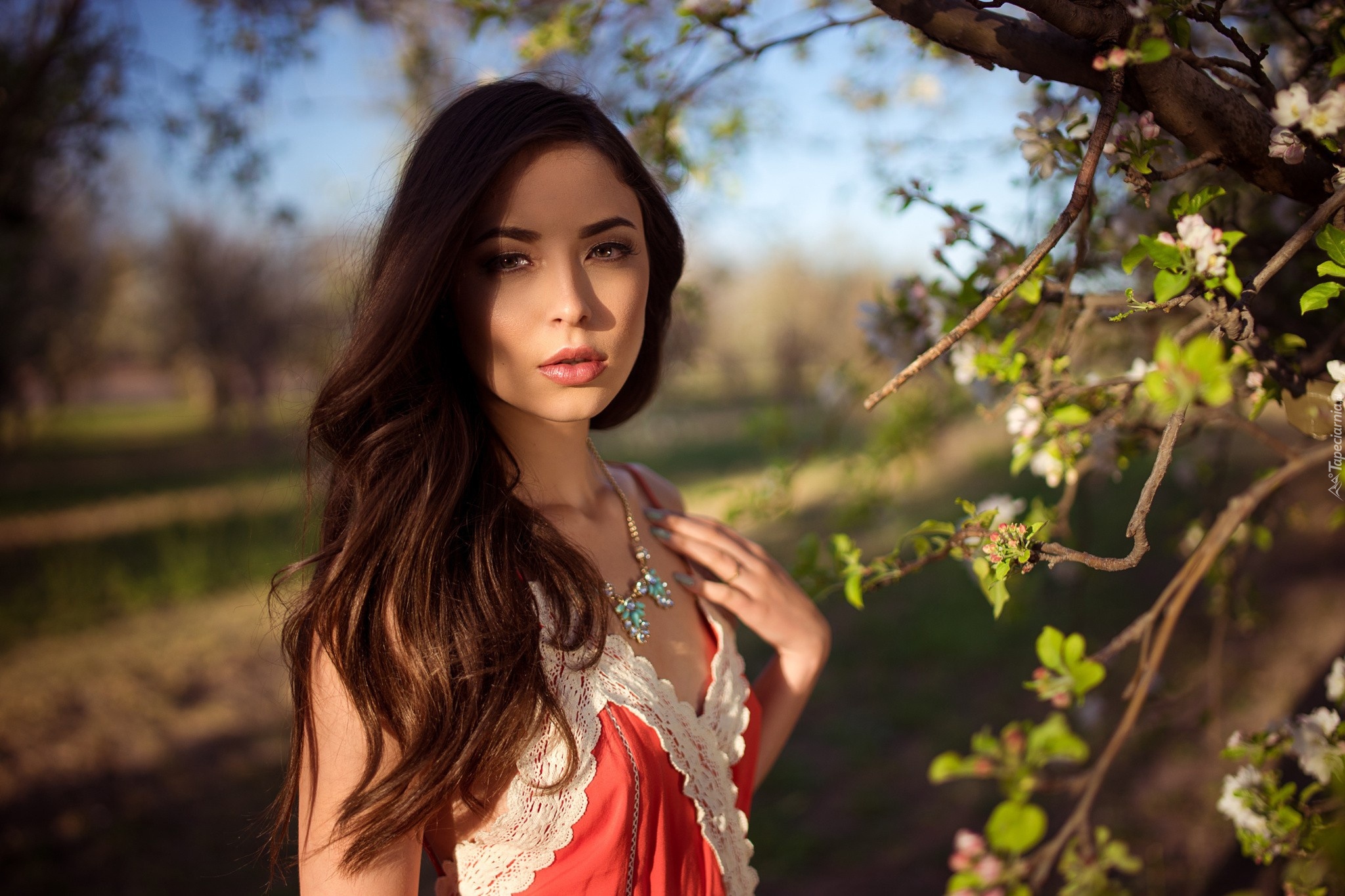 Edytor tapety: Długowłosa szatynka z naszyjnikiem