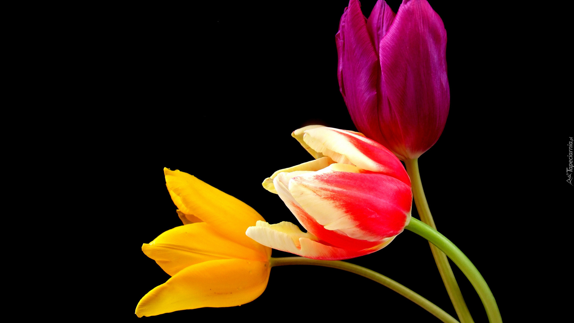 Edytor tapety: Trzy kolorowe tulipany
