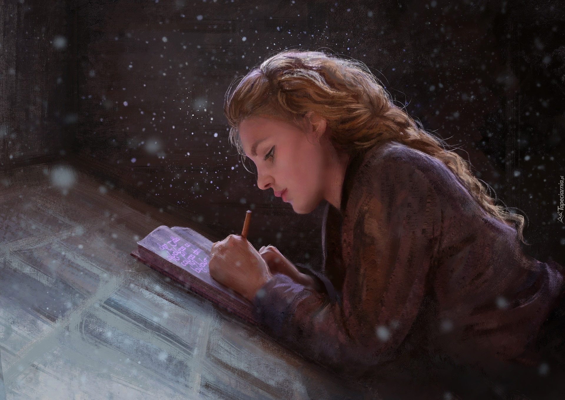 Edytor tapety: Dziewczyna pisząca w notatniku