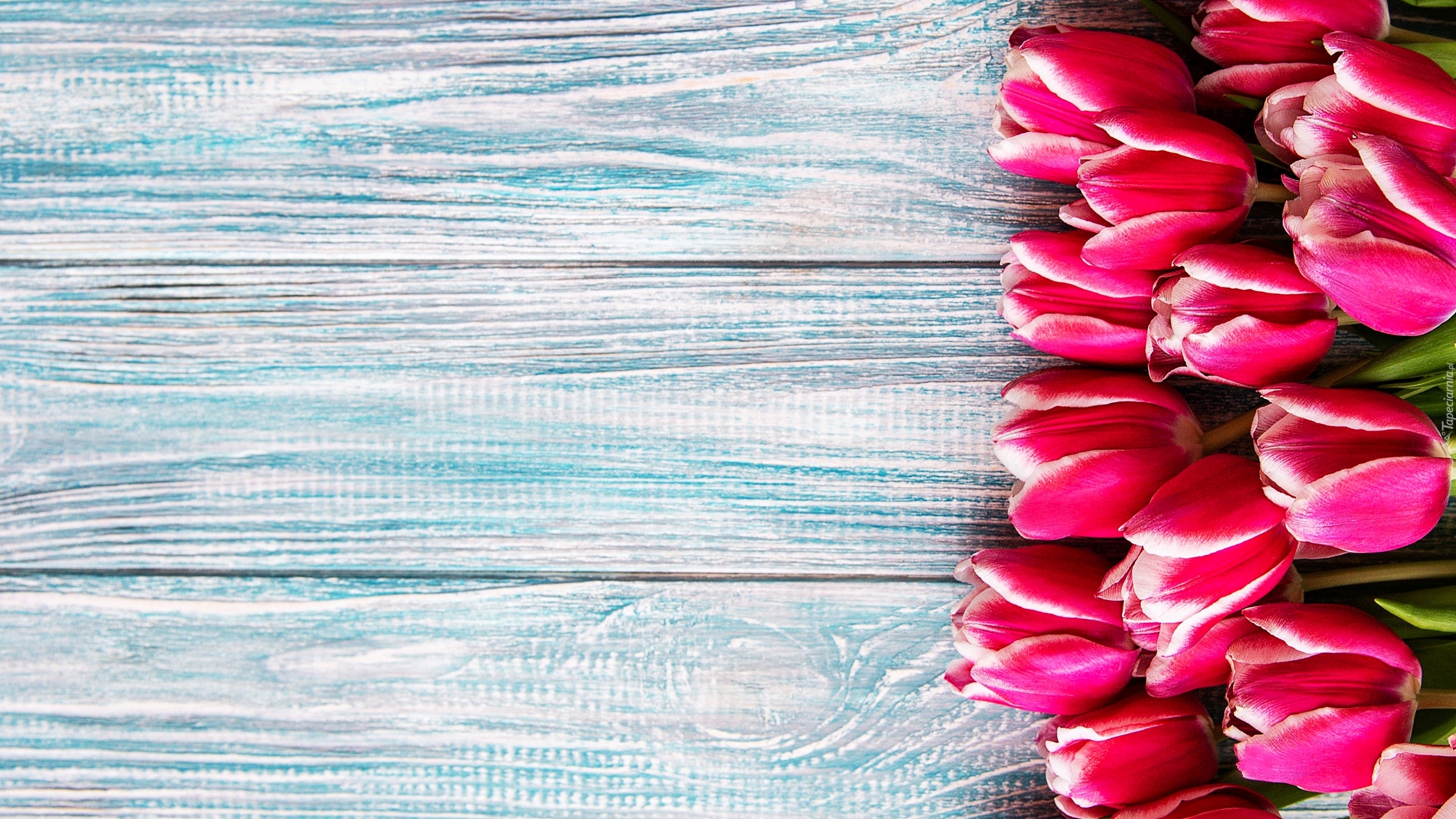 Edytor tapety: Ciemnoróżowe tulipany na deskach