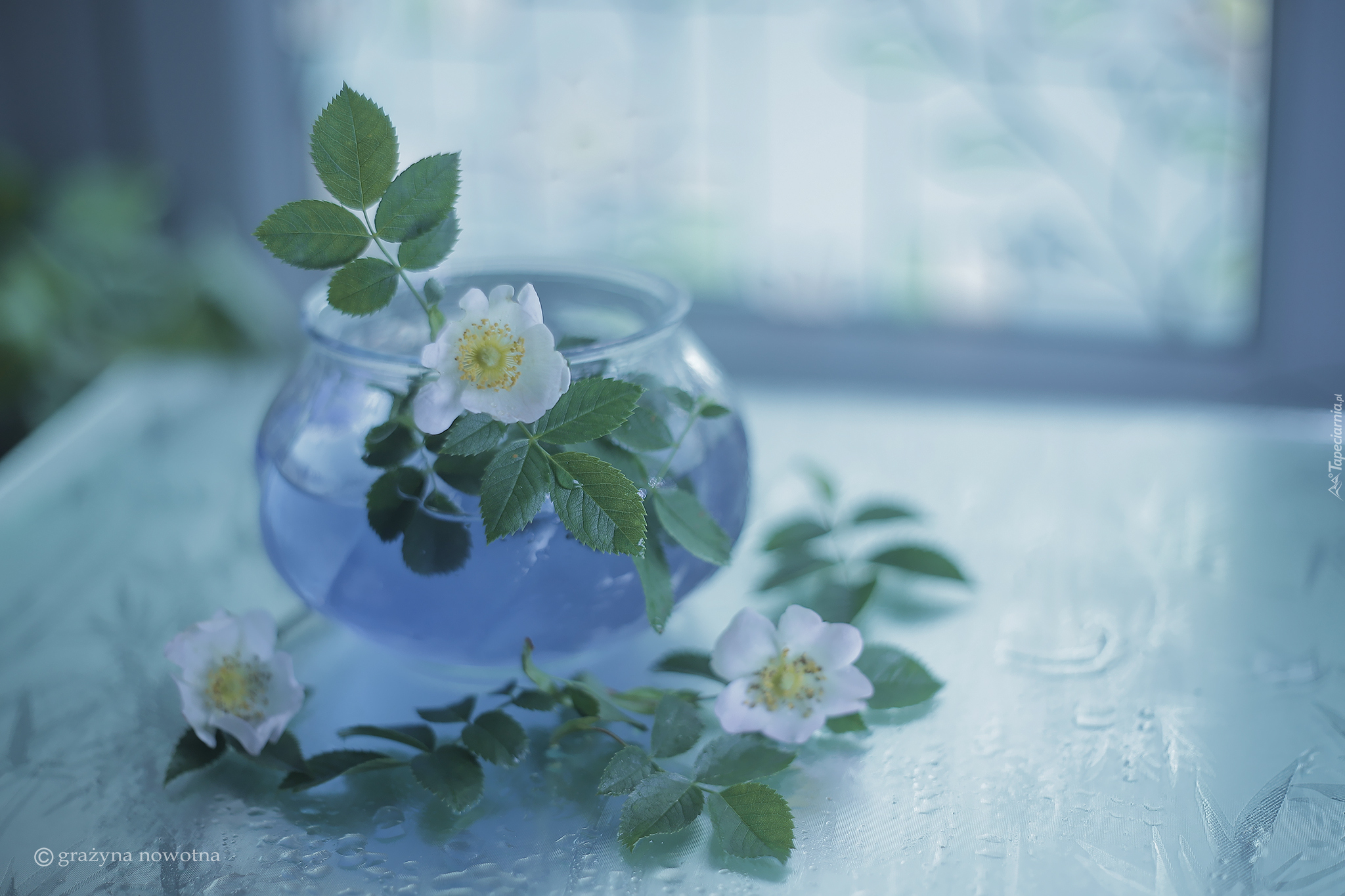 Edytor tapety: Dzikie róże w wazoniku