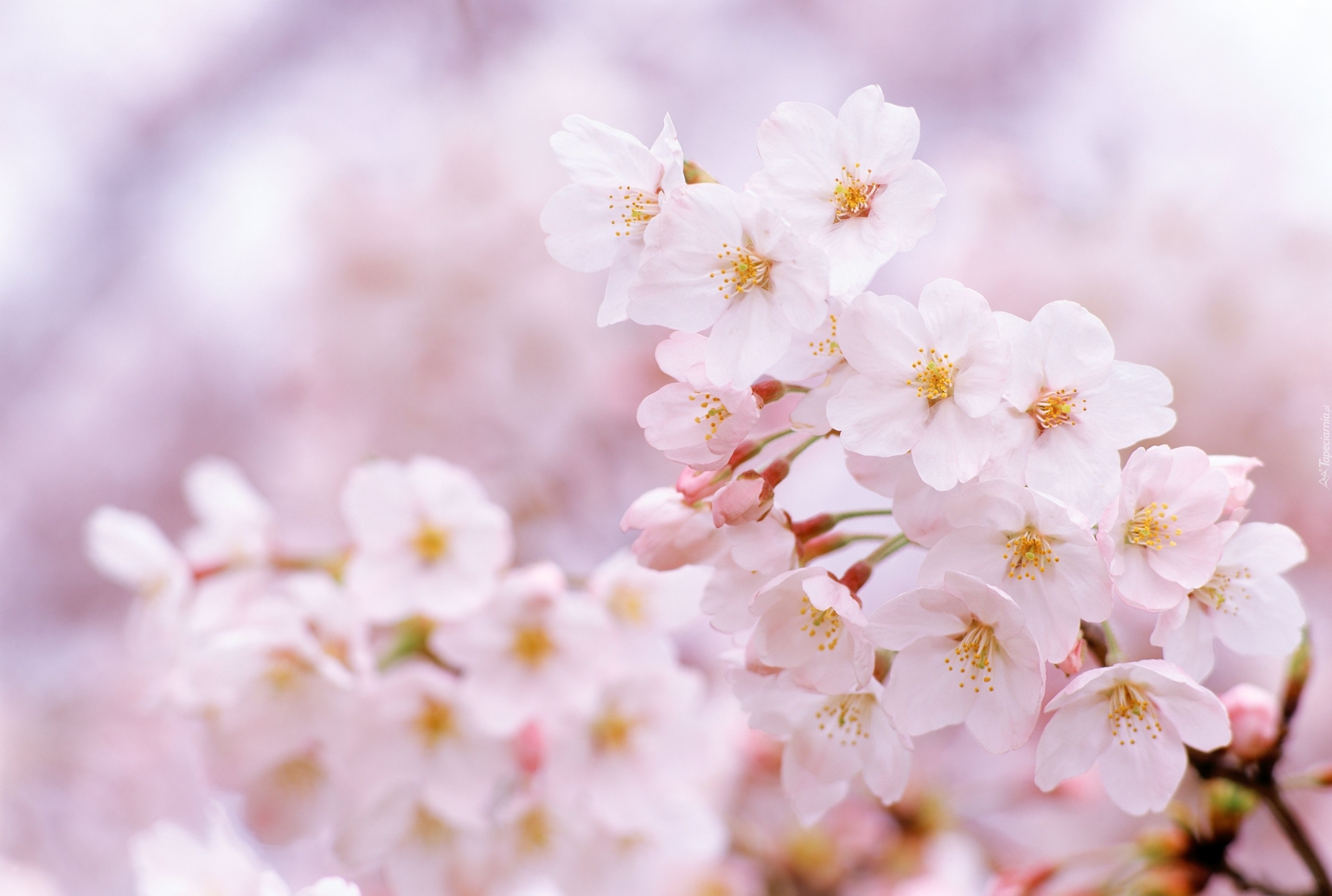 Edytor tapety: Bladoróżowe kwiaty wiśni na gałązkach