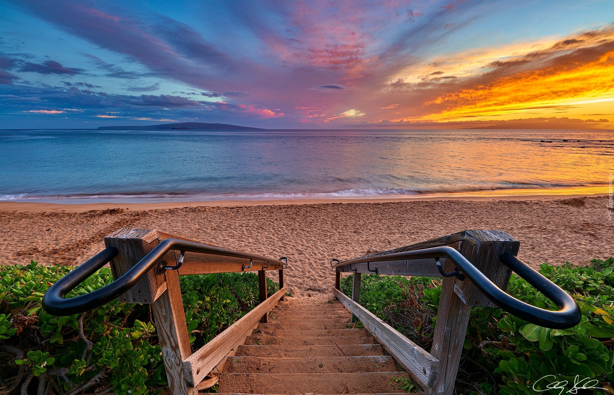 Edytor tapety: Schody prowadzące na morską plażę