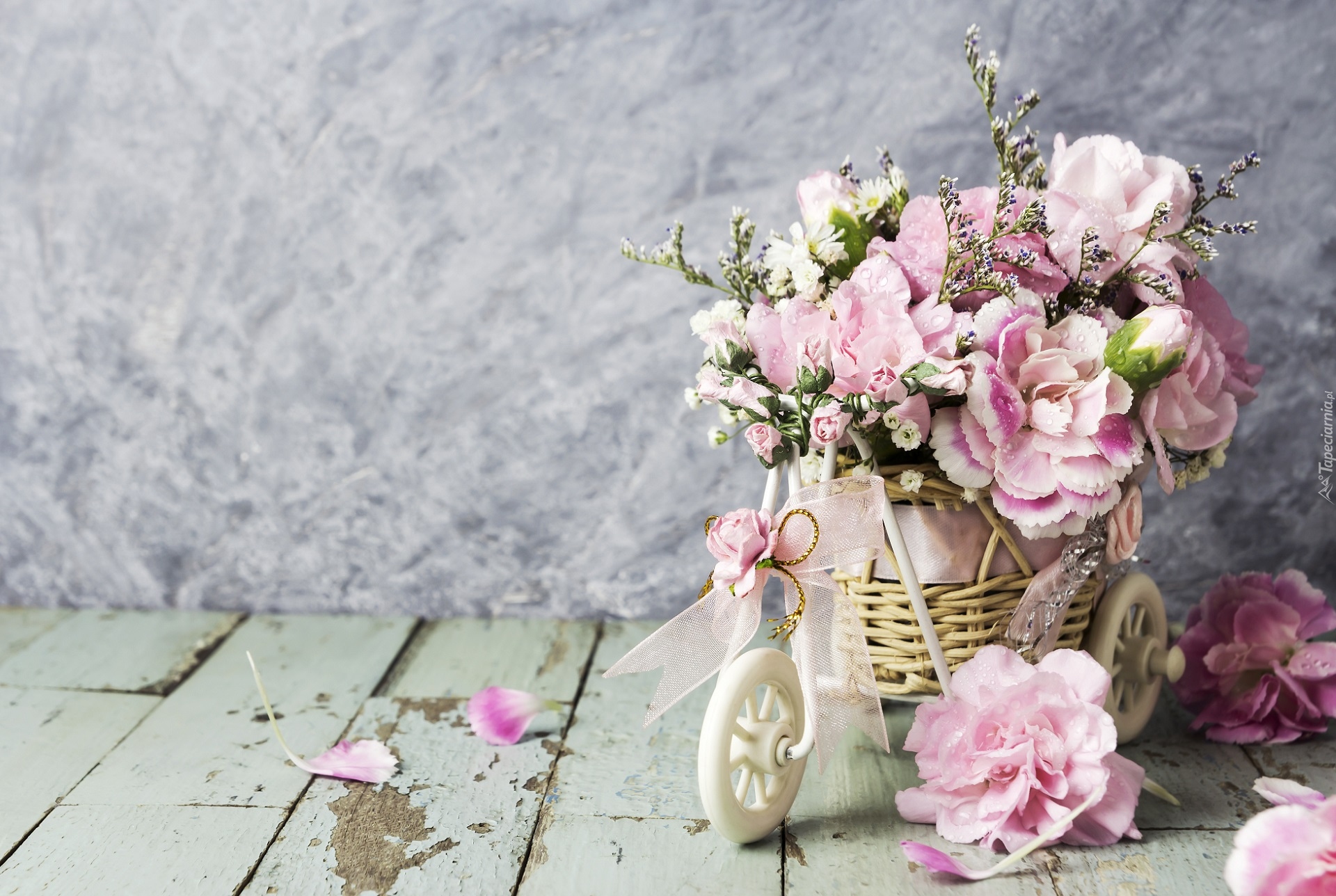 Edytor tapety: Goździki Szabo w ozdobnym rowerku