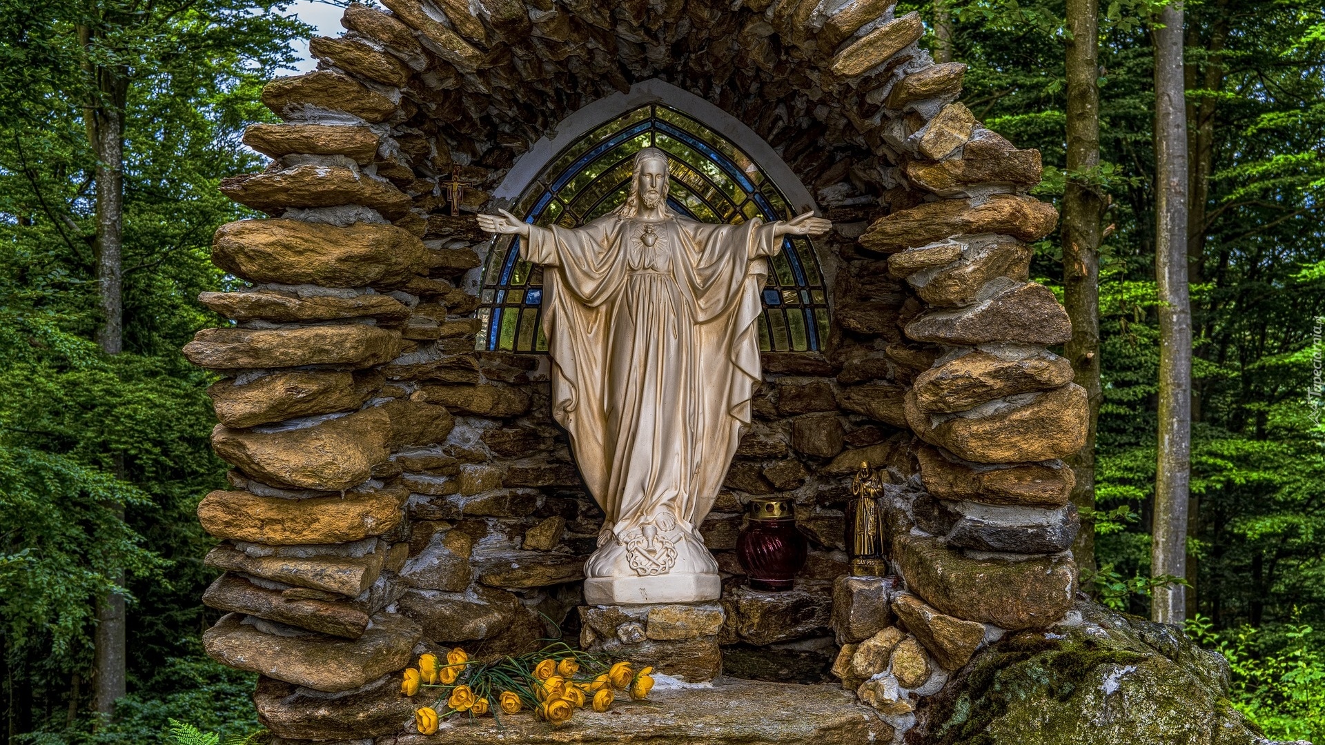 Edytor tapety: Kamienna kapliczka z figurą Jezusa