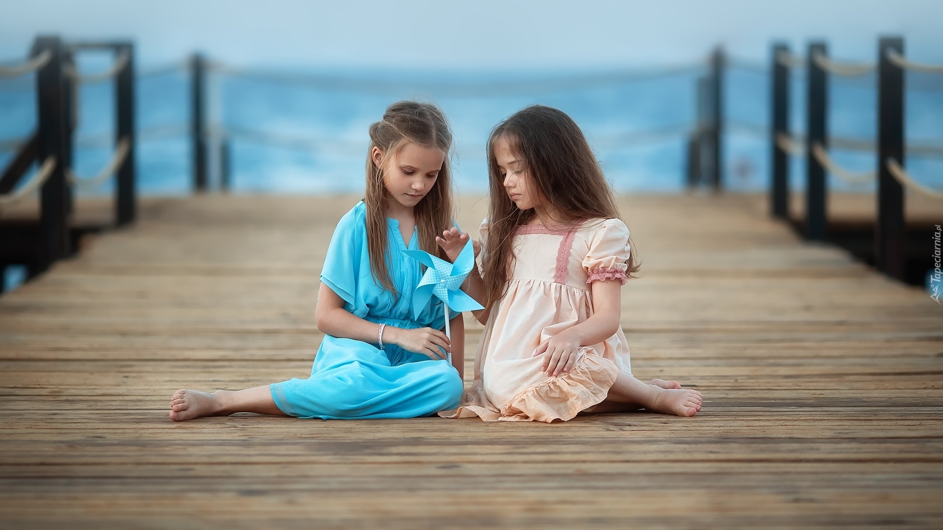 Edytor tapety: Dziewczynki z wiatraczkiem na molo