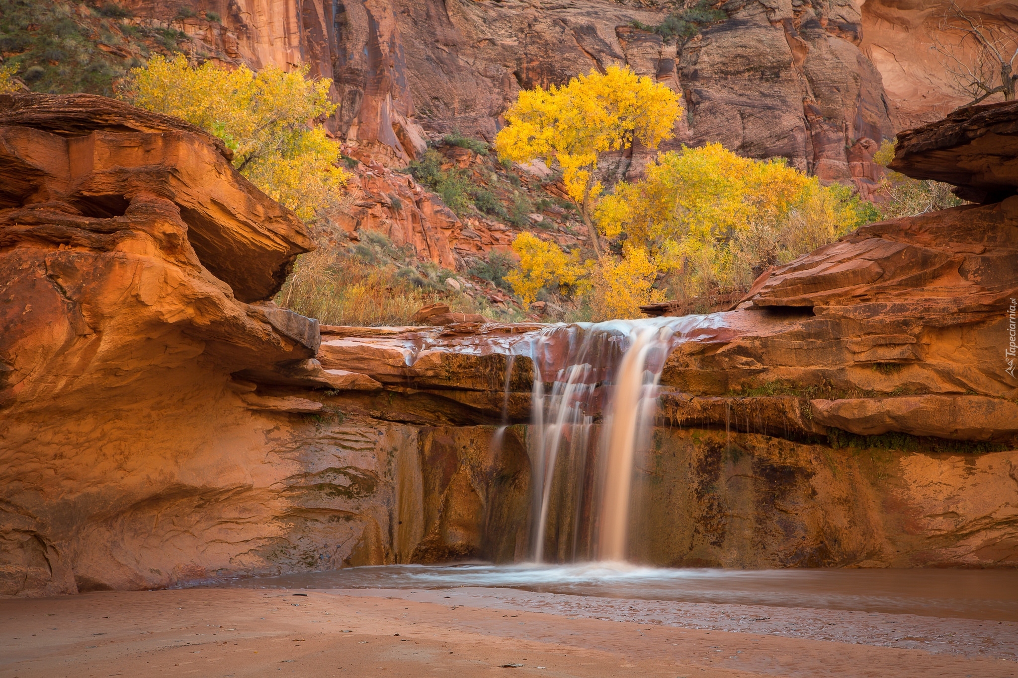 Edytor tapety: Drzewa obok wodospadu na skałach
