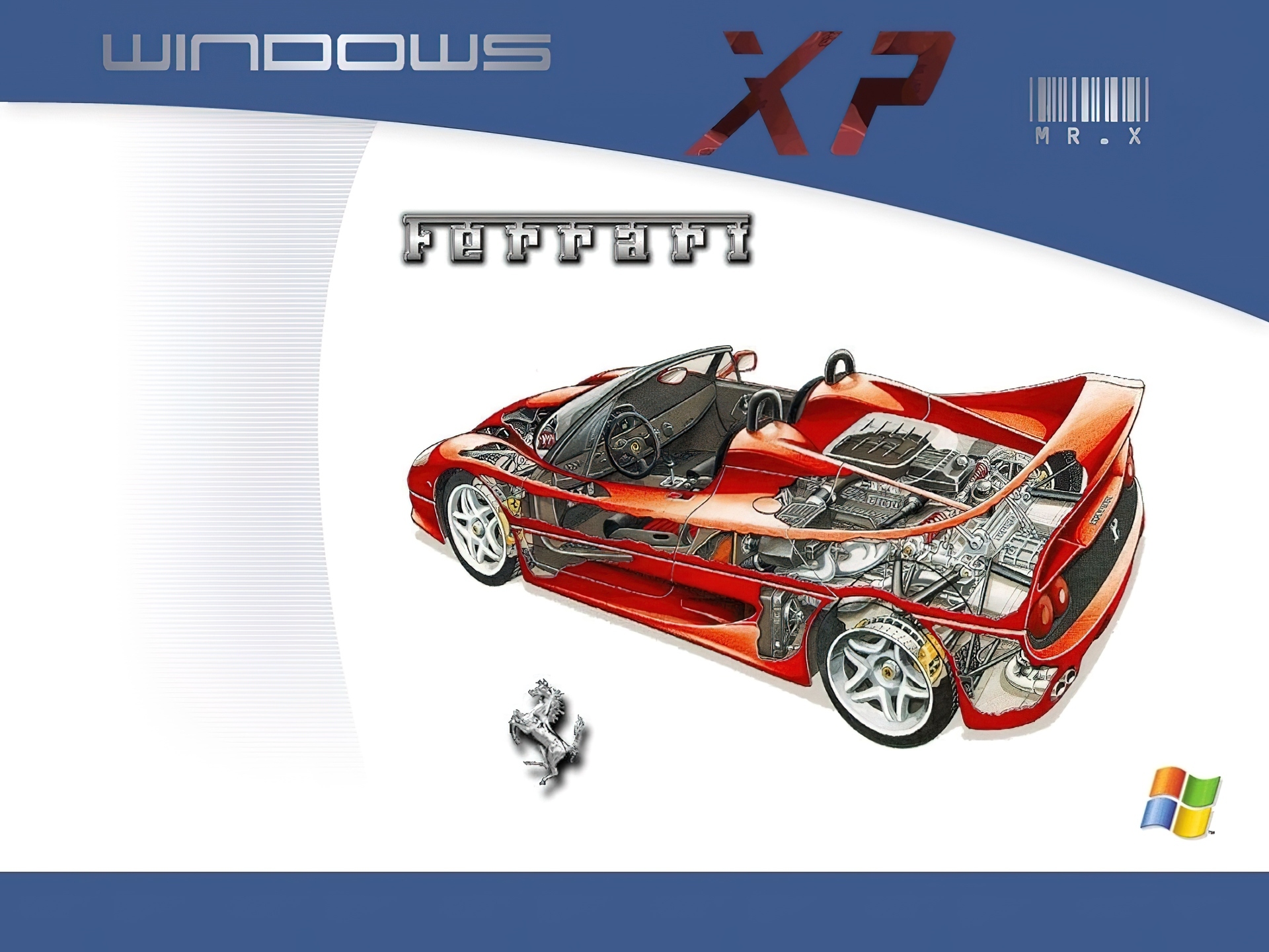 Edytor tapety: Windows XP, ferrari, samochód, microsoft