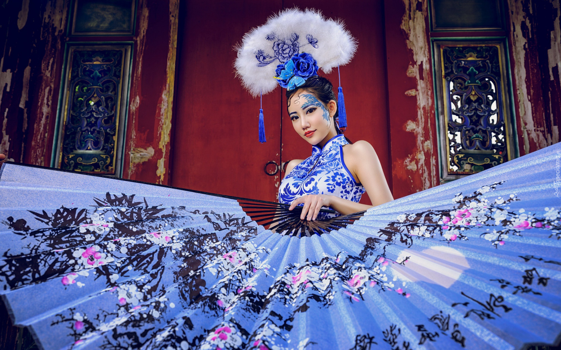 Edytor tapety: Azjatka z olbrzymim wachlarzem