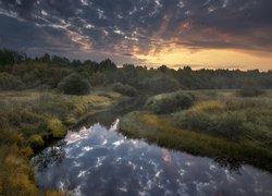 Edytor tapety: Wschód słońca nad rosyjską rzeką Puya i lasem
