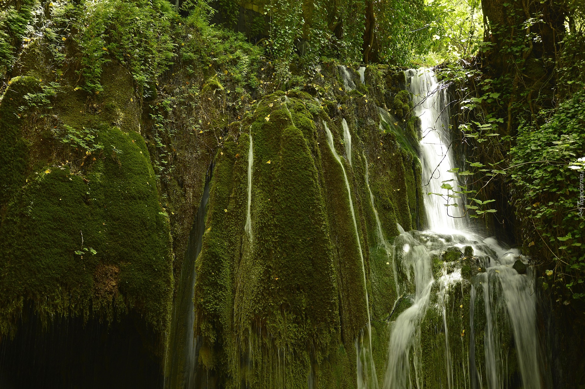Edytor tapety: Wodospad na omszałej skale