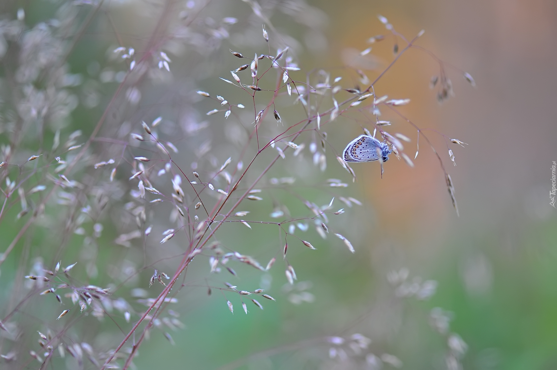 Edytor tapety: Modraszek ikar na gałązce rośliny