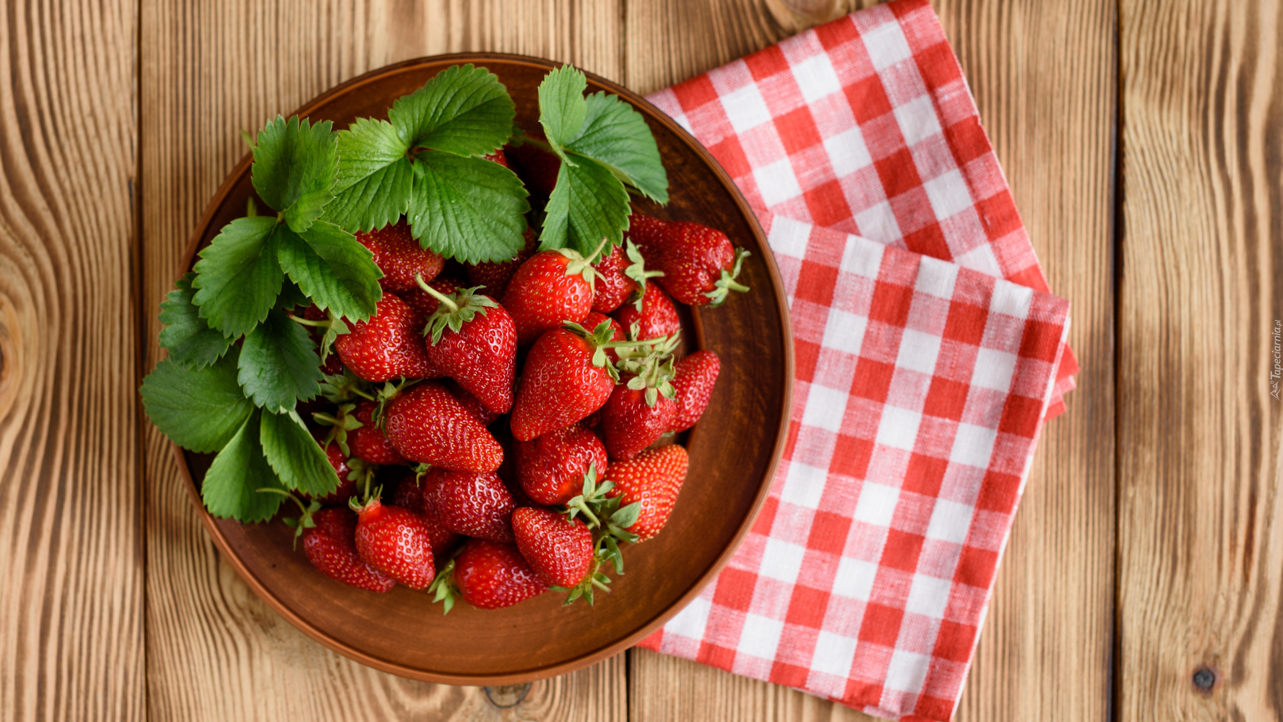 Edytor tapety: Serwetki obok talerza z truskawkami