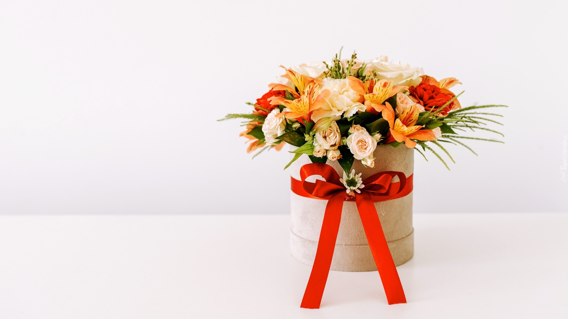 Edytor tapety: Bukiet kwiatów w pudełku z kokardą