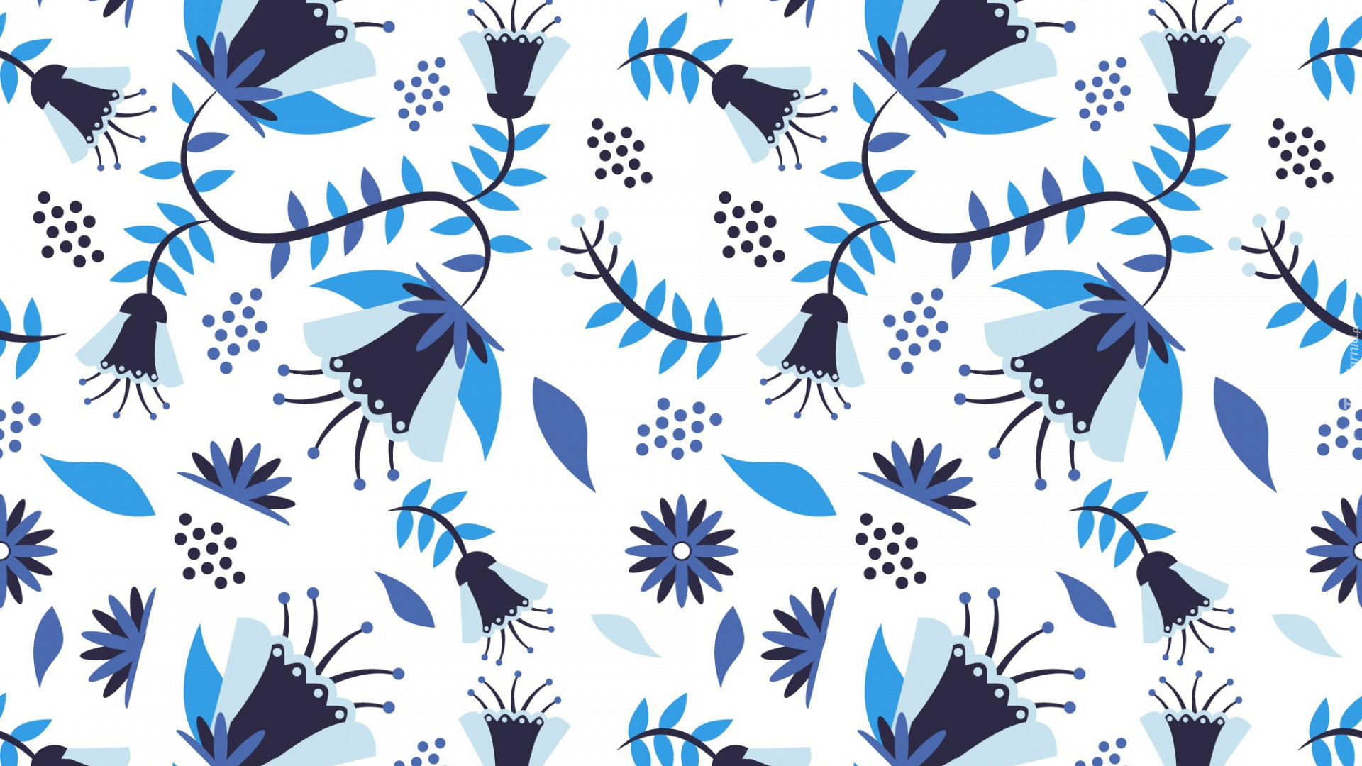 Edytor tapety: Niebiesko-granatowe kwiaty w grafice