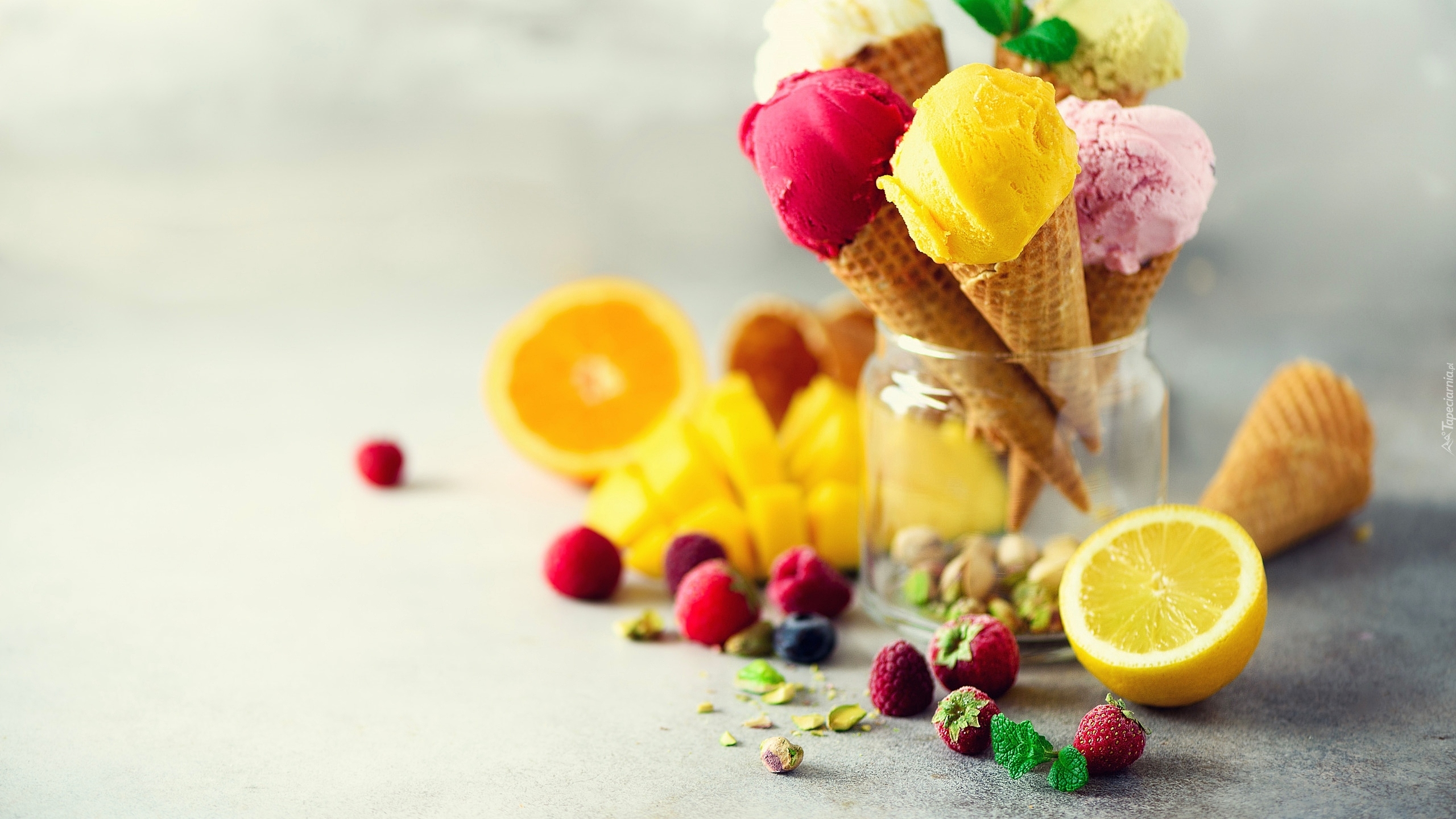 Edytor tapety: Owoce obok słoika z lodami