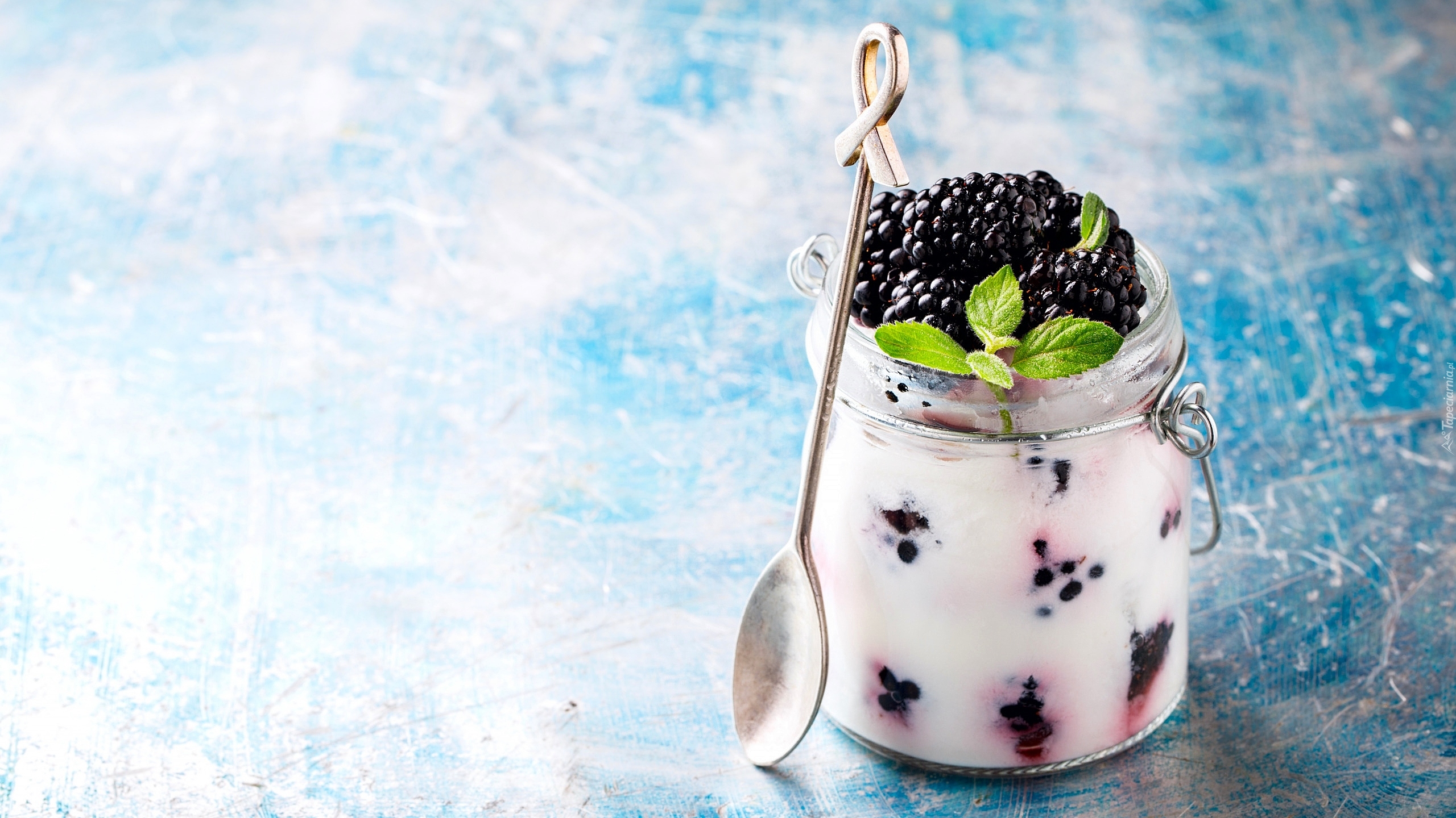 Edytor tapety: Jeżyny z jogurtem w słoiku