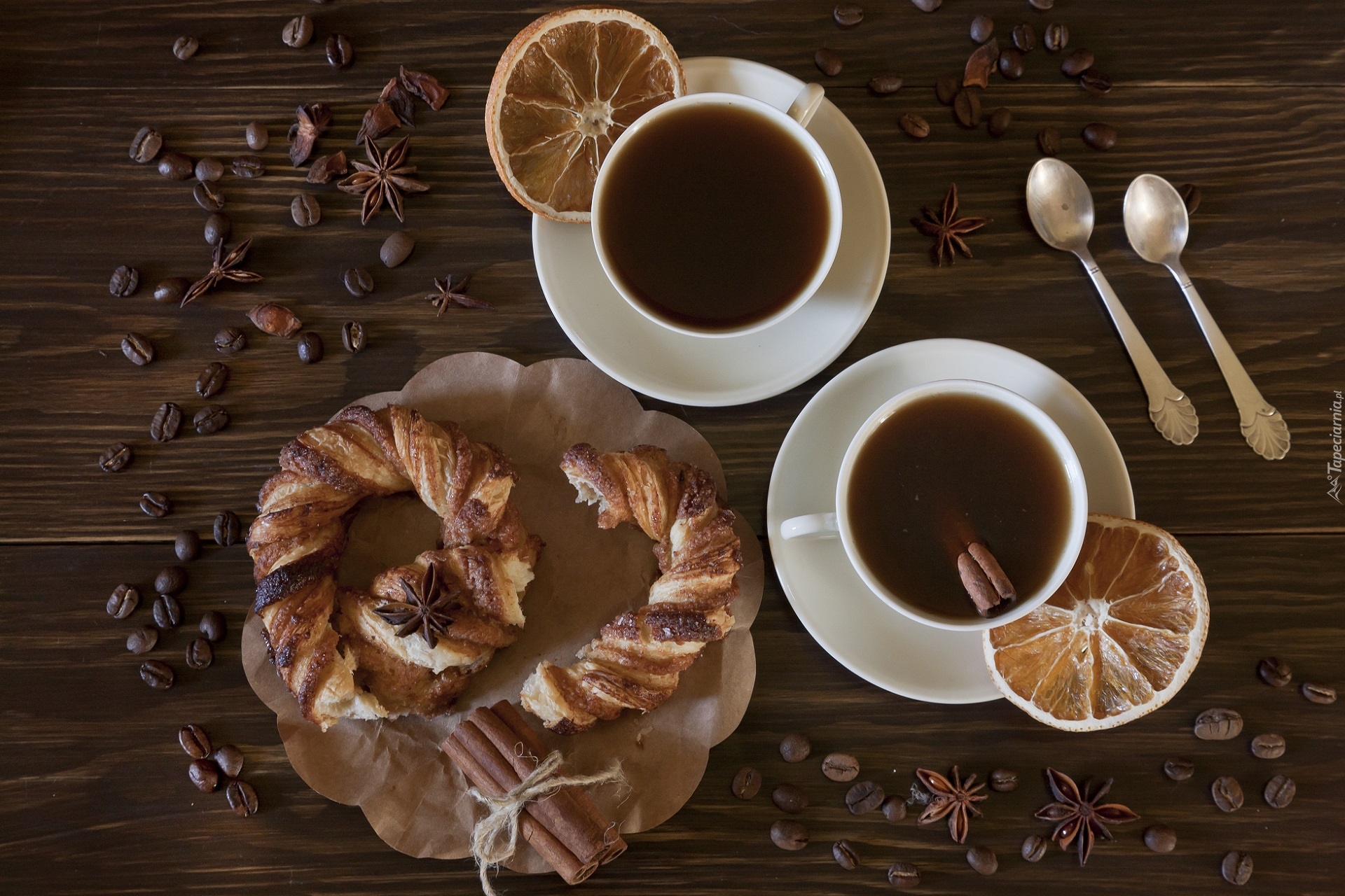 Edytor tapety: Dwie filiżanki kawy z drożdżówką