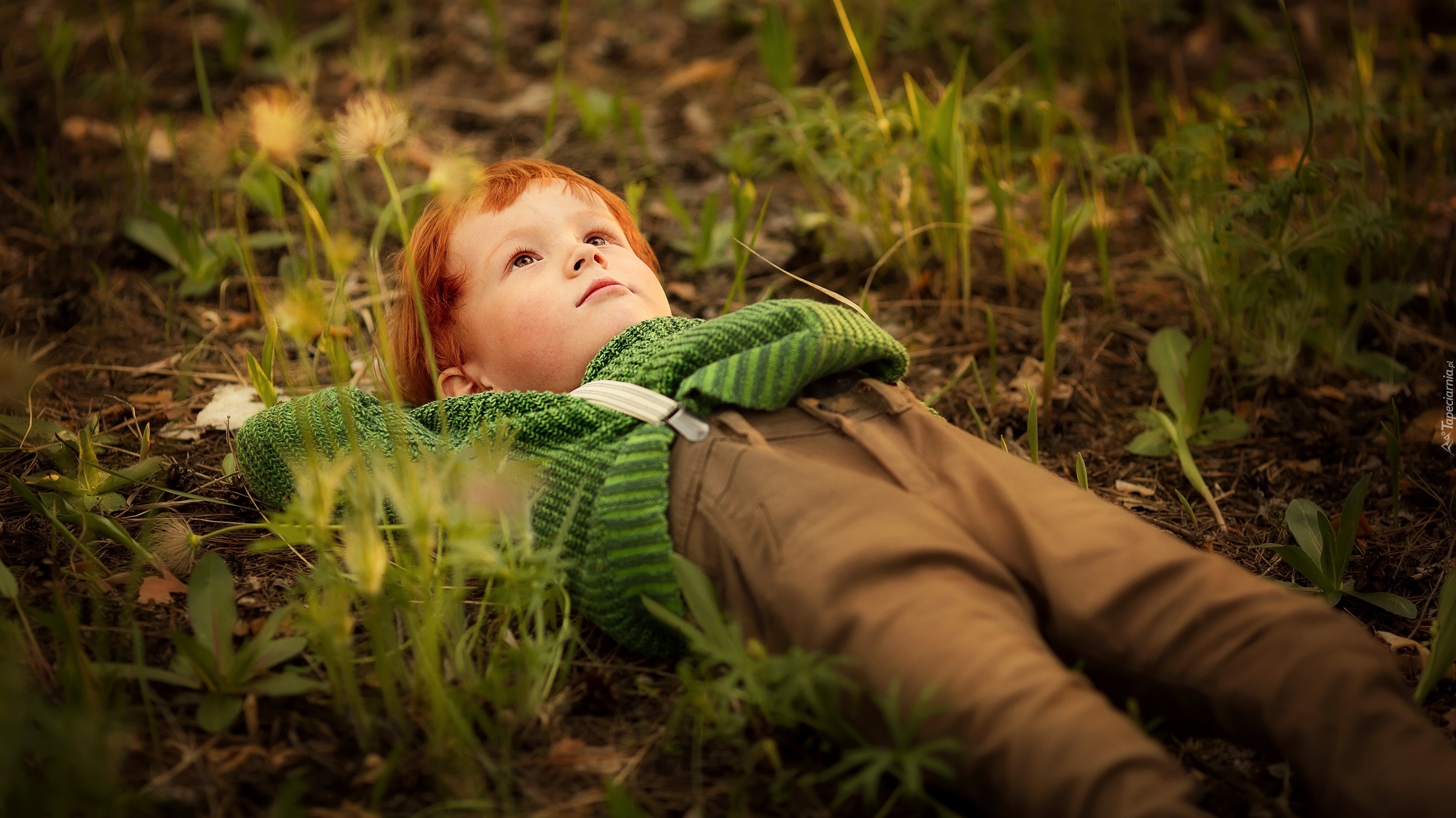Edytor tapety: Chłopiec leżący na trawie