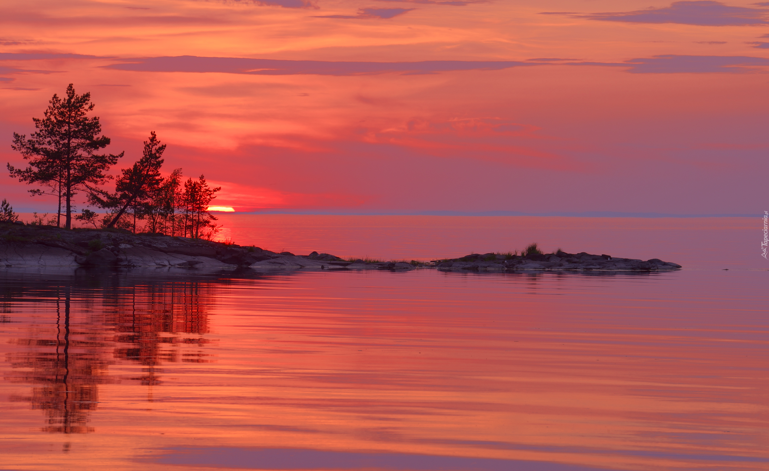 Edytor tapety: Drzewa na skale w jeziorze Ładoga
