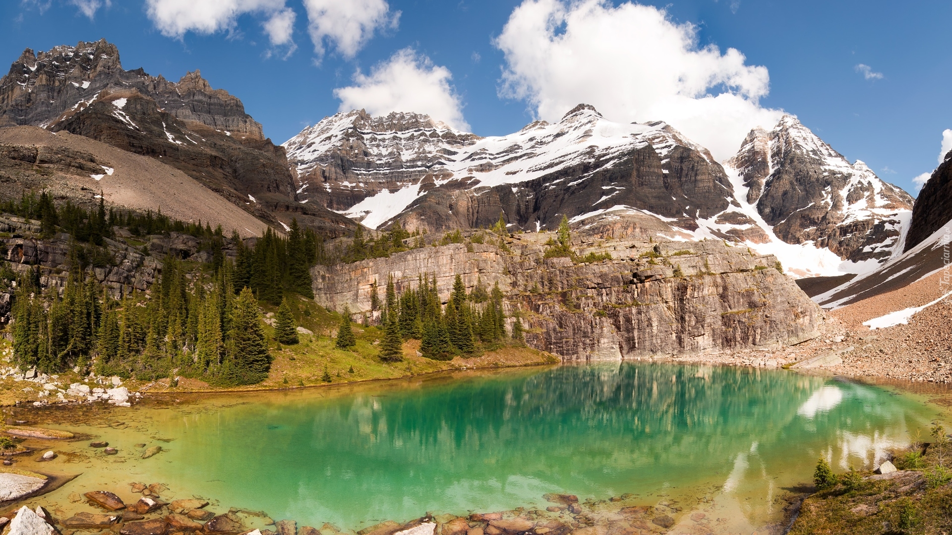 Edytor tapety: Szmaragdowy kolor wody górskiego jeziora