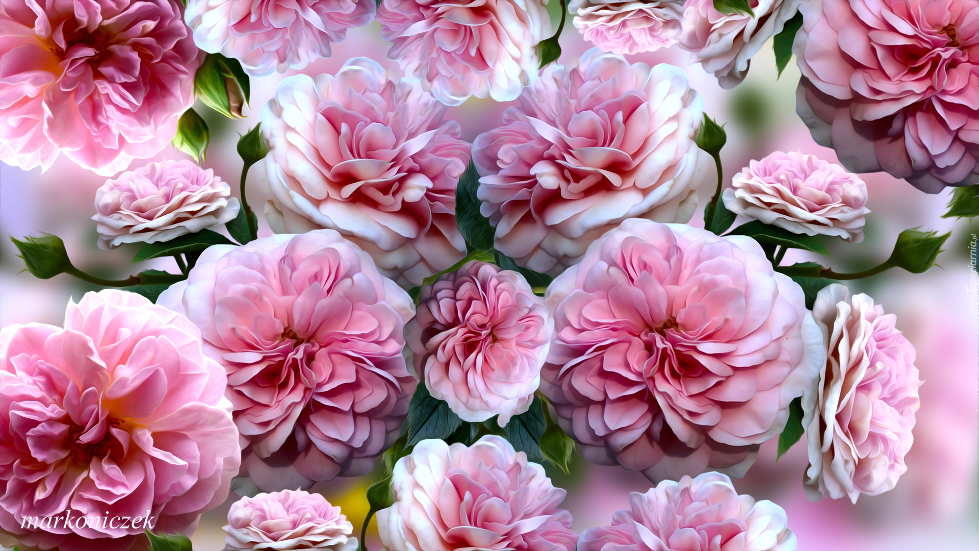 Edytor tapety: Rozwinięte różowe róże w grafice