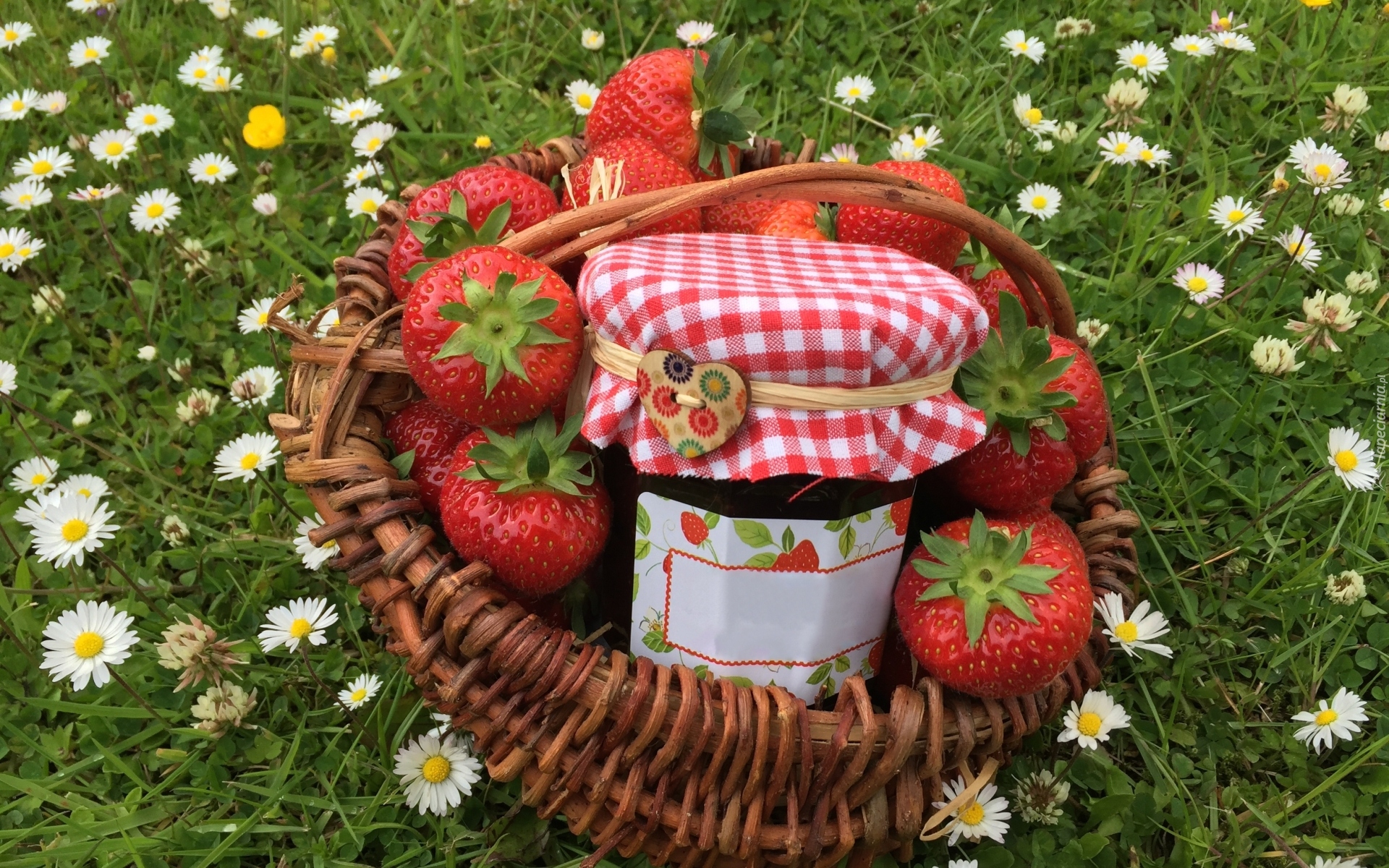 Edytor tapety: Dżem i truskawki w koszyku